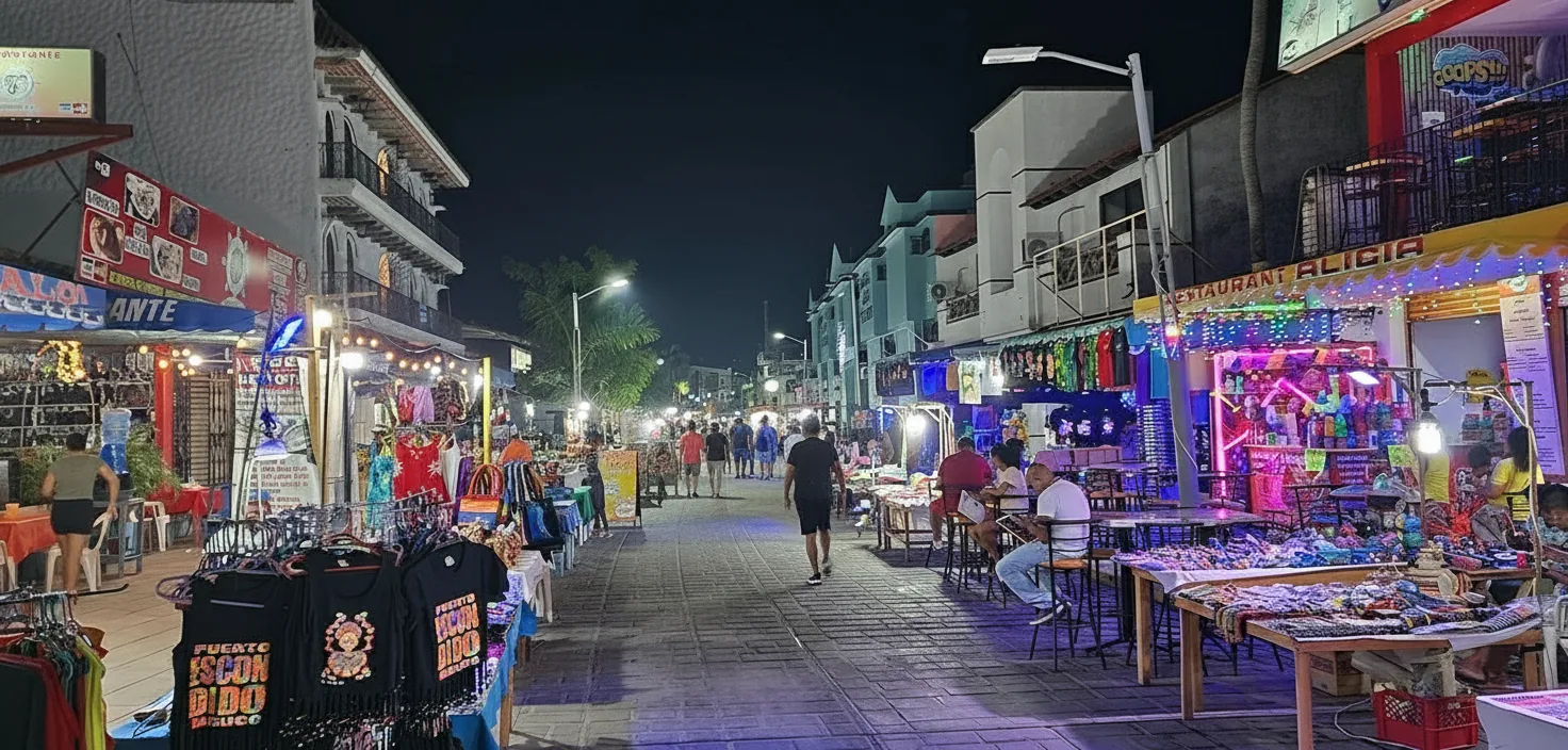 Adoquín Street is one of the most popular and lively streets in Puerto Escondido, Oaxaca,