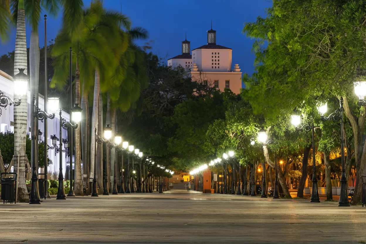 During the evening, Adoquín Street becomes vibrant with music, lights, and visitors