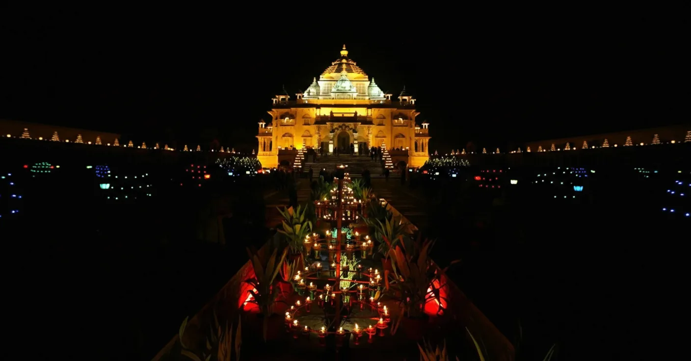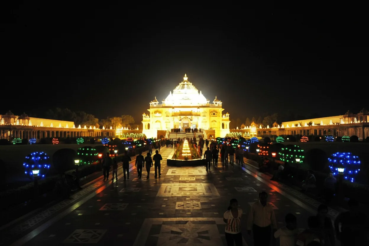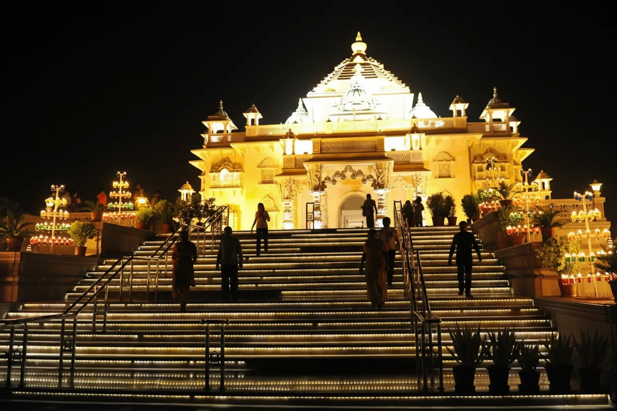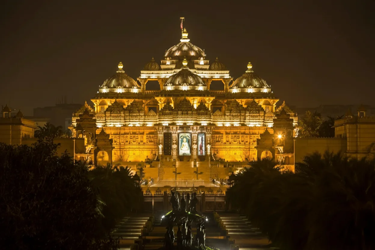 Akshardham Temple, located in East Delhi, is a grand cultural and spiritual