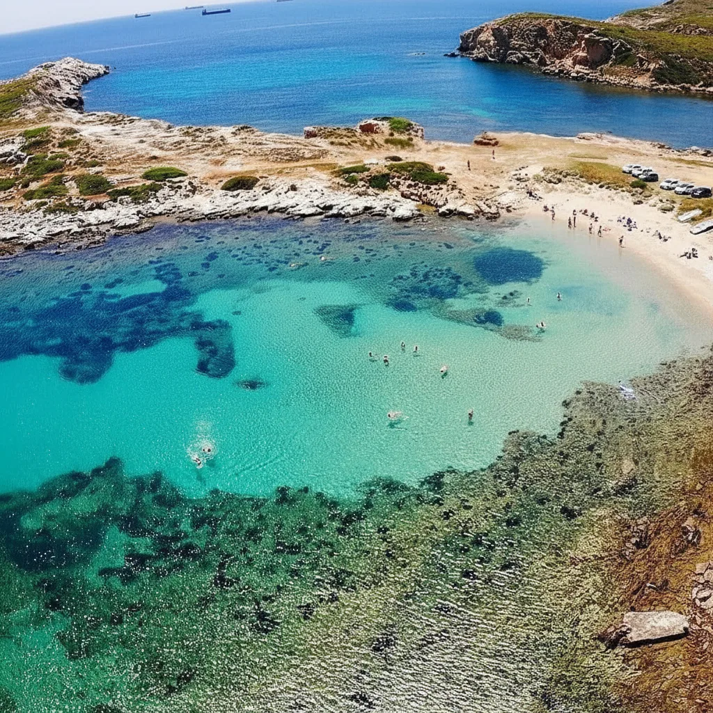 Akvaryum Bay is one of the most visually striking swimming spots on Bozcaada Island. Known for its crystal-clear turquoise water and rocky seabed, the bay gets its name from the aquarium-like visibility beneath the surface. It is especially popular among snorkelers and travelers seeking a natural, unspoiled beach environment