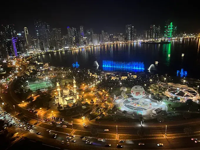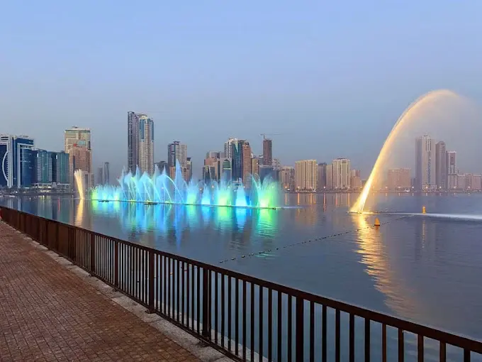 - Sharjah Musical Fountain ⛲🎶: A spectacular light and water show in the lagoon ✨🤩
