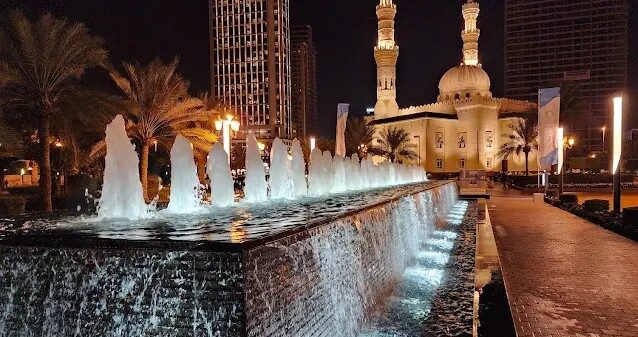 - 7:30 PM – Fountain Show ⛲🎶: Watch the Sharjah Musical Fountain show ✨🤩