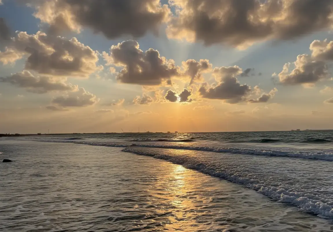 • 6:30 AM – Arrival & Walk 🚶‍♀️🌅: Arrive at Al Rafaah Beach for a sunrise walk 🌊✅