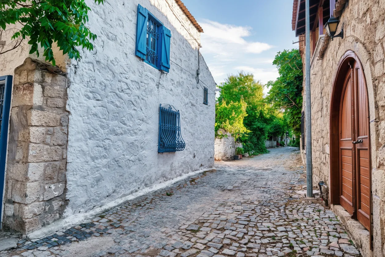 stone streets, traditional Greek-style houses, boutique cafés, and small local