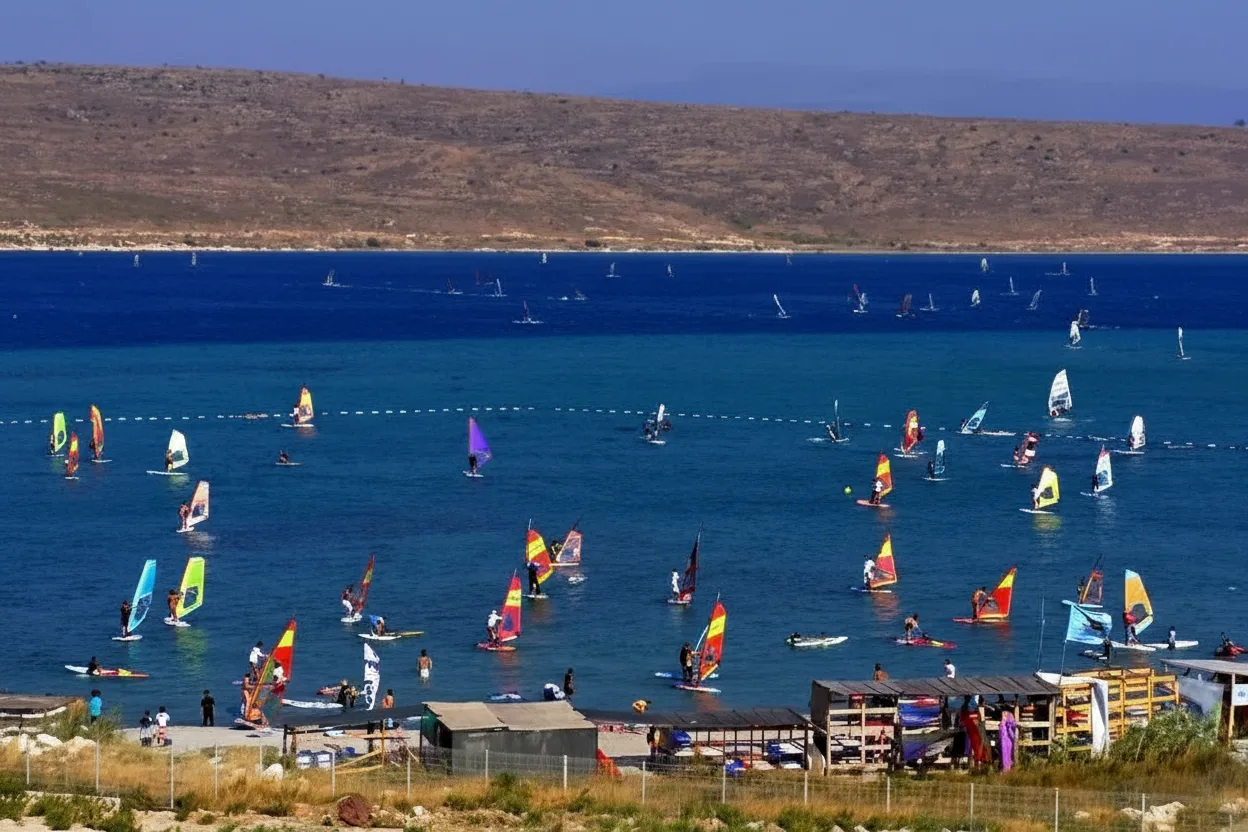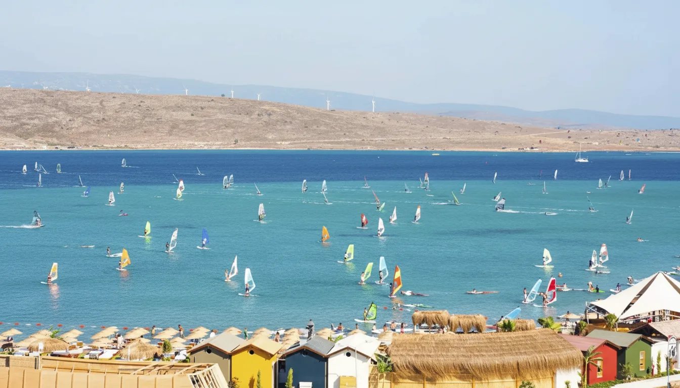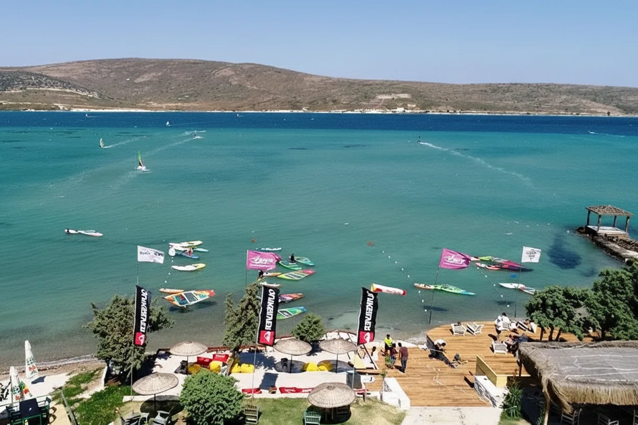 Alacati Surf Beach is one of the most famous windsurfing destinations in Turkey, located near Alacati in Cesme, Izmir Province. This shallow bay is known for its steady winds, calm water conditions, and wide coastal area, making it ideal for windsurfing and other water sports. The beach attracts both beginners and professional surfers throughout the year. Visiting Alacati Surf Beach allows travelers to experience an energetic seaside atmosphere while enjoying scenic coastal views and outdoor activities. The area offers equipment rentals, surf schools, and relaxing beach facilities for visitors. For travelers, Alacati Surf Beach provides an exciting coastal experience combining water sports, natural beauty, and vibrant beach culture.