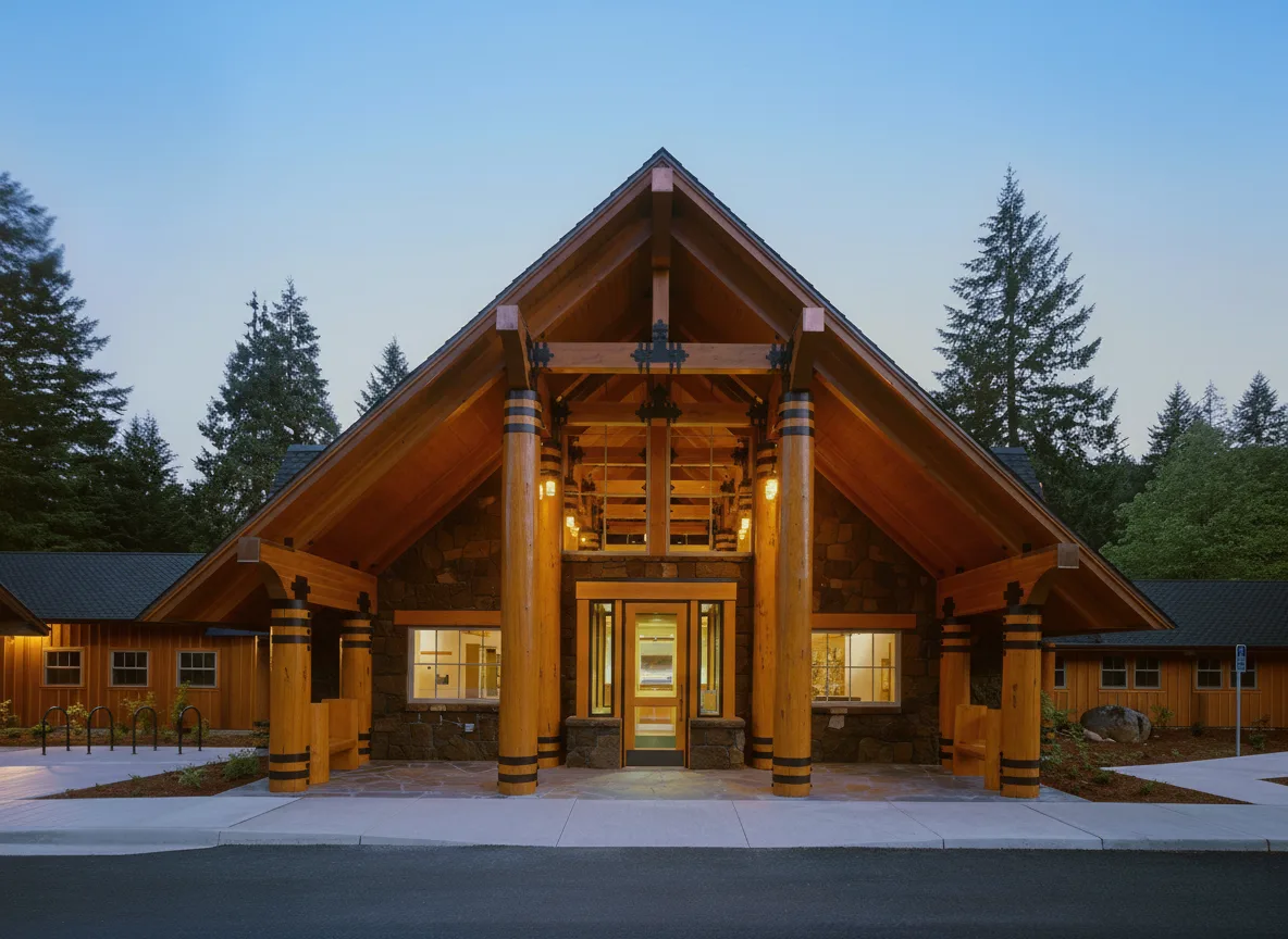 • 🏁 Find the building located 📍 directly along the park access road. 🅿️