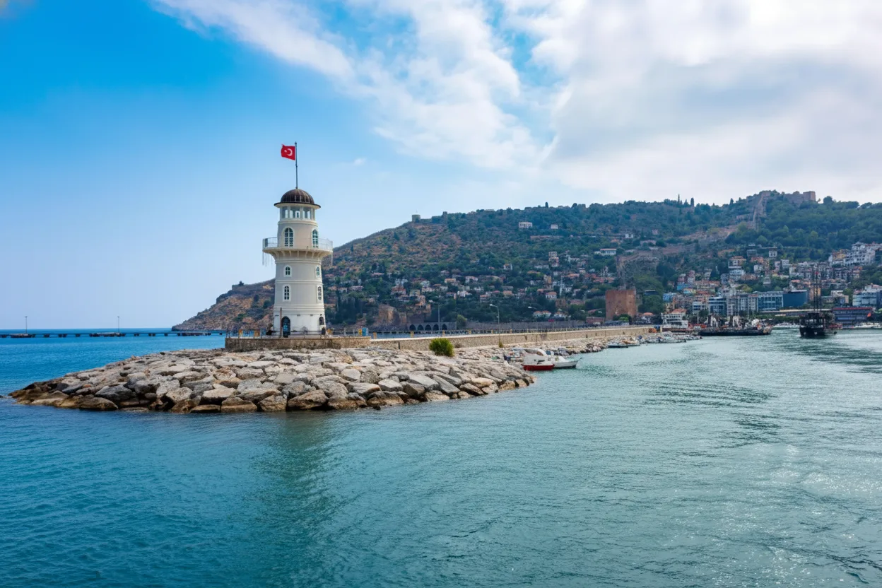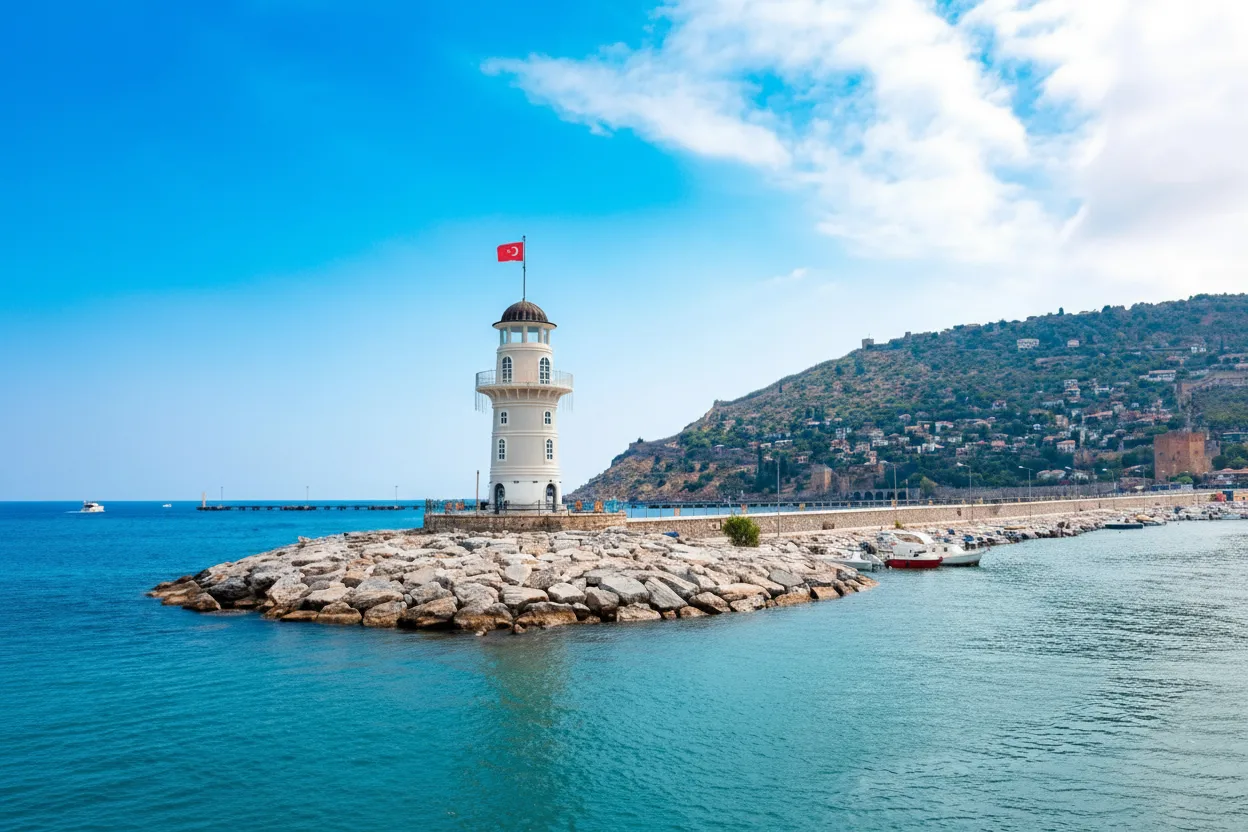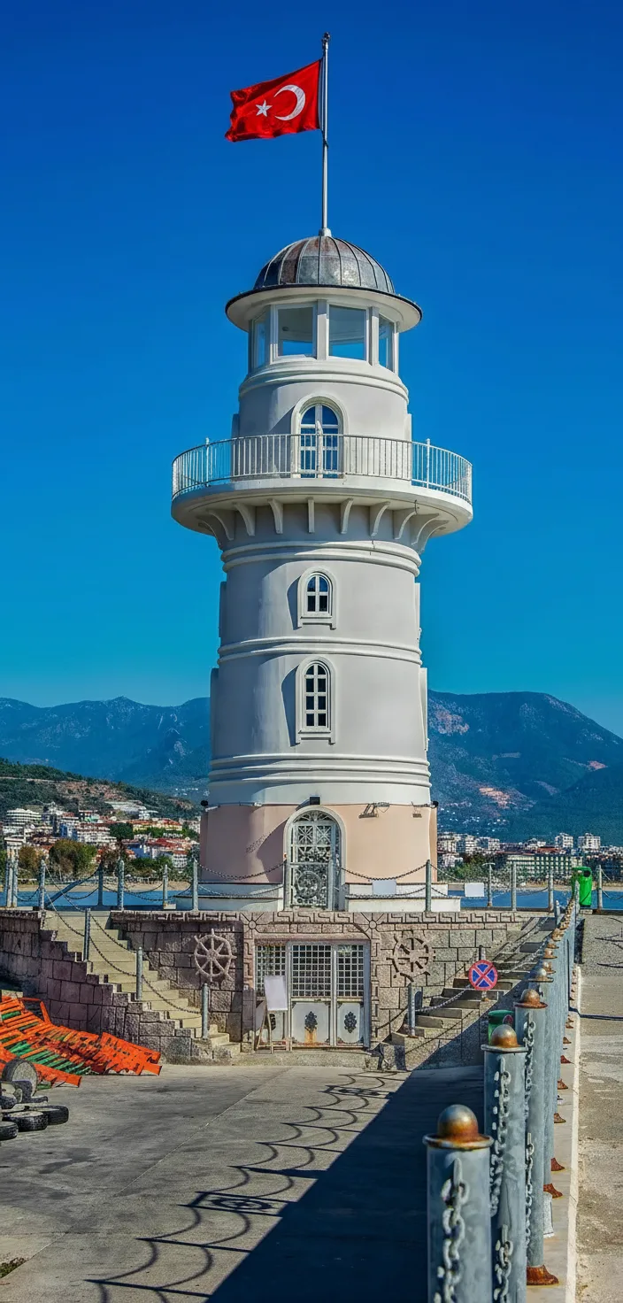 Alanya Lighthouse is a scenic coastal landmark located at the edge of Alanya Harbor in Turkey. Positioned along the breakwater, the lighthouse offers uninterrupted views of the Mediterranean Sea and the surrounding coastline. Built to guide ships safely into the harbor, the lighthouse has become a popular walking destination for visitors. The surrounding promenade provides a peaceful atmosphere, especially during sunset hours. For travelers, Alanya Lighthouse delivers a relaxing seaside experience with panoramic sea views and excellent photography opportunities.