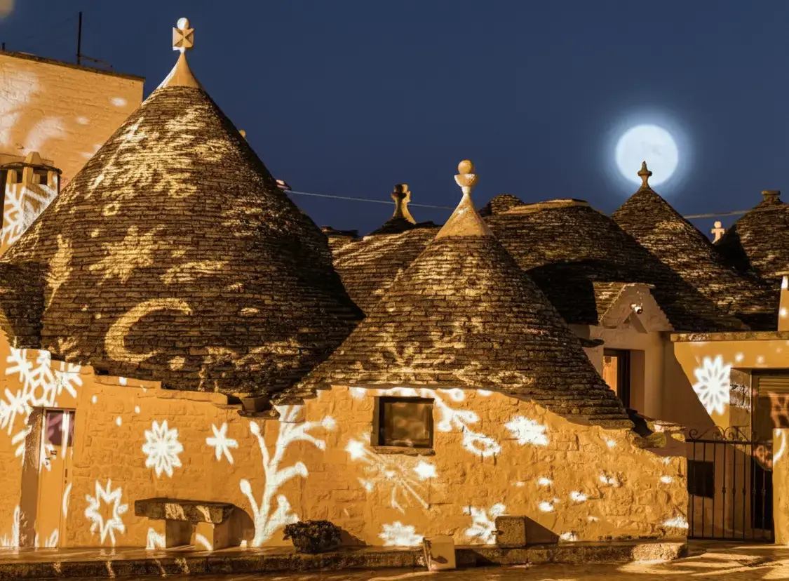 - Explore illuminated Trulli houses 💡 decorated for the celebration ✨🏠🌟