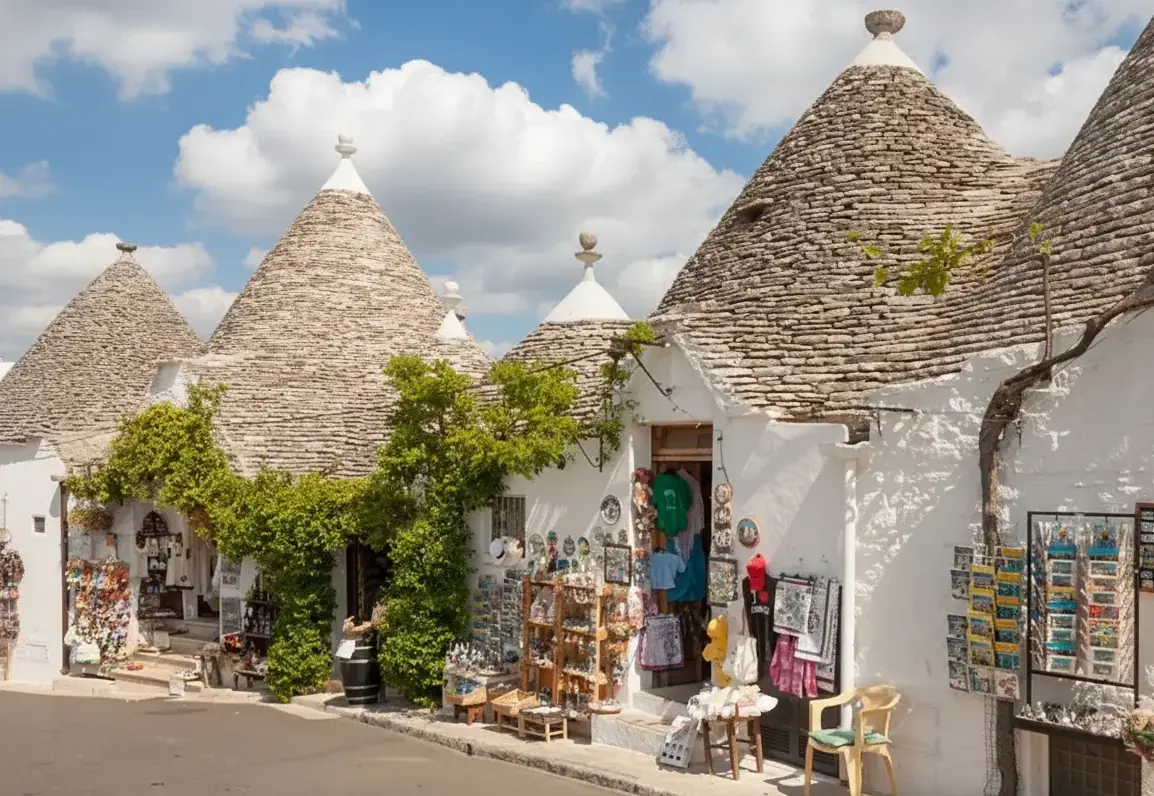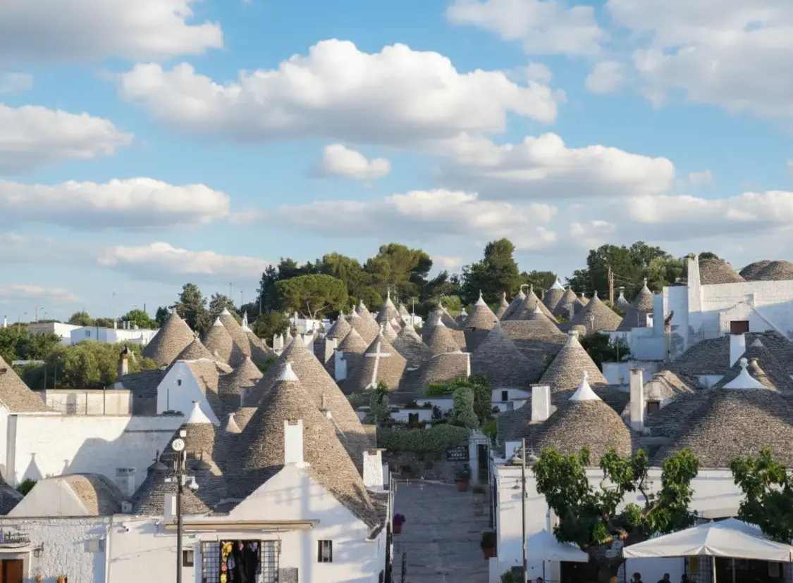The Alberobello Town Center is the vibrant core of this UNESCO World Heritage Site, filled with authentic Italian charm, traditional shops, and welcoming locals. Here, visitors can experience daily life surrounded by the iconic Trulli houses, enjoy local Apulian cuisine, and shop for handmade crafts and souvenirs. It’s the ideal starting point for exploring the historical districts of Rione Monti and Aia Piccola while soaking in Alberobello’s lively culture.