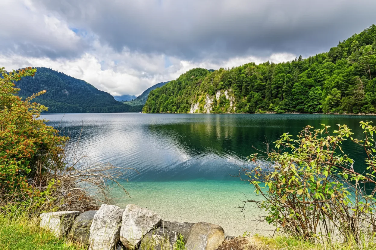 Alpsee Lake, located near Hohenschwangau and Neuschwanstein Castles, is one of Bavaria’s most scenic lakes. Surrounded by mountains and forests, it offers peaceful walking paths, lakeside views, and a calm atmosphere ideal for relaxing after visiting the nearby castles.