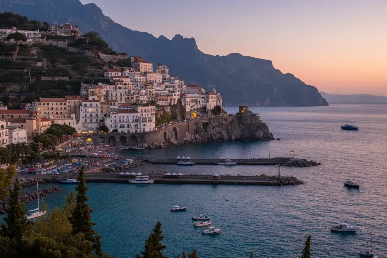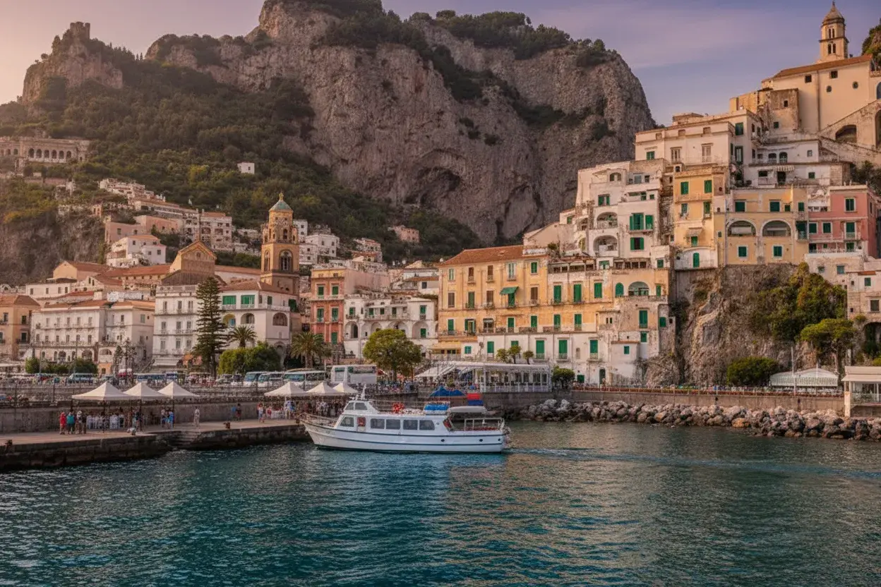 - Amalfi Town ⛪ visit the stunning Amalfi Cathedral 🙏 and enjoy seafood 🦞 at a harbor-side restaurant 🍽️😋