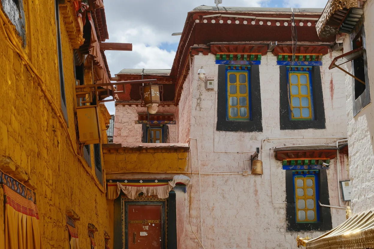 Ancient Alleyways around Barkhor Street and Jokhang Temple reveal the historic character of Lhasa’s old town. These narrow lanes, lined with traditional Tibetan houses and prayer flags, reflect centuries of local life and architectural heritage. Walking through these alleyways allows travelers to step away from busy pilgrimage routes and discover quiet corners filled with history. The stone paths, wooden windows, and small courtyards offer a glimpse into everyday Tibetan living. For travelers, Ancient Alleyways provide a peaceful and authentic experience that highlights the cultural depth of Lhasa beyond its major temples.