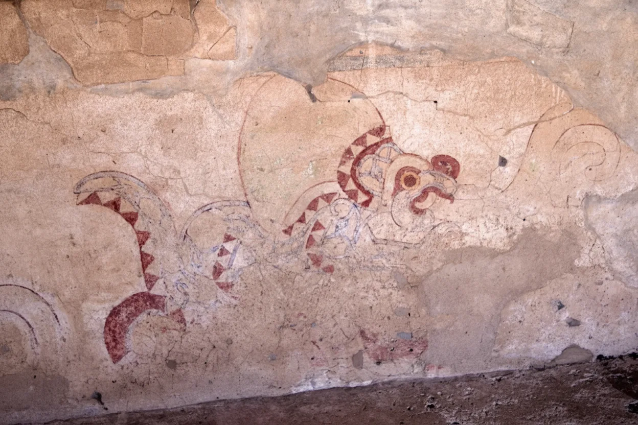 • 🎨 Observe the preserved mural 🏛️ paintings and the ancient symbols 🦅