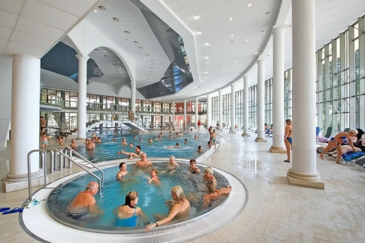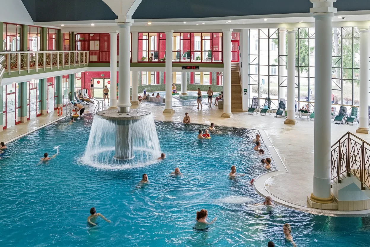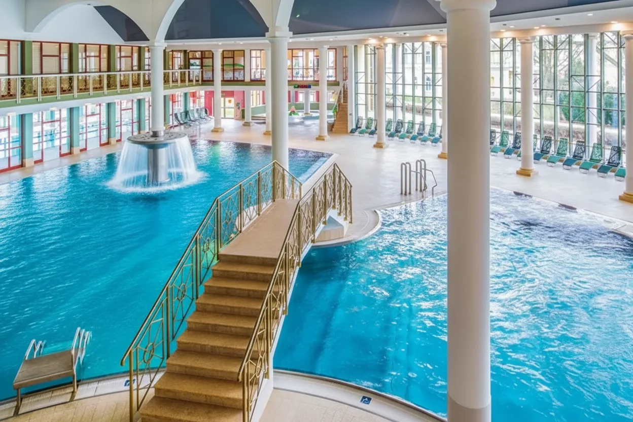 Aquaforum Spa is the main wellness and thermal bathing complex in Františkovy Lázně, one of Czechia’s most peaceful spa towns. The spa is known for its mineral-rich thermal water and modern relaxation facilities. The complex includes indoor and outdoor thermal pools, wellness treatments, and calm resting areas. It attracts visitors seeking relaxation, recovery, and quiet time in a spa-focused environment. For travelers, Aquaforum Spa offers an ideal introduction to Czech spa culture, combining therapeutic water, comfort, and a calm atmosphere.