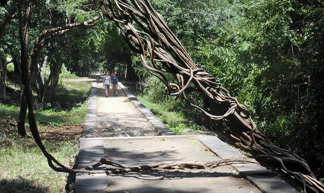 • 8:15 AM 🕣 – Walk through the forest paths 🚶‍♀️🌲 and monks’ ruins 🏚️👀📜