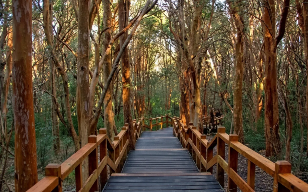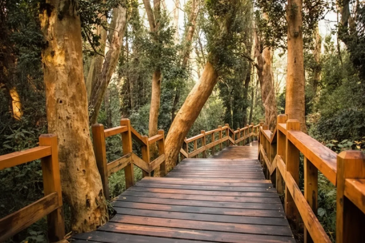 • 👣 Stroll the elevated 🪵 wooden boardwalks designed to protect the delicate root systems 🌿