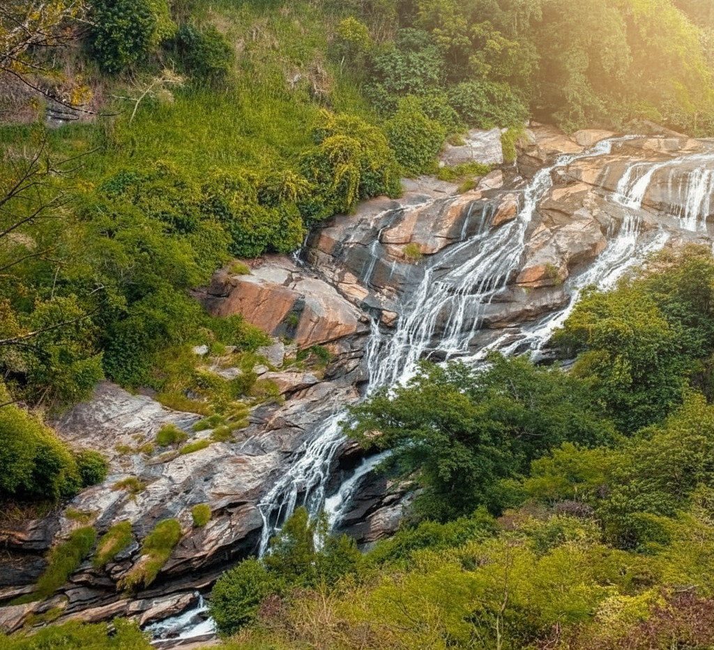 height of nearly 30 meters, this mesmerizing cascade is surrounded by dense forests, tea