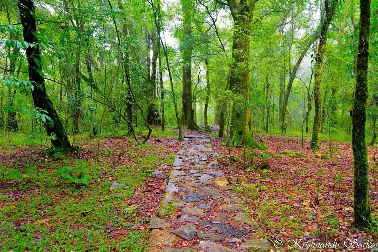 • 🌿 Walk along shaded paths 🌲 through the trees 🍃