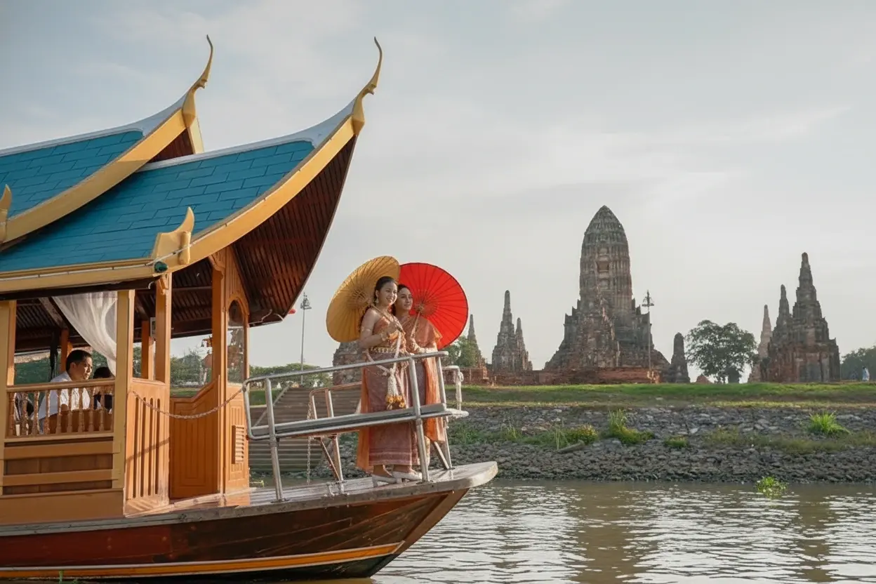 • Enjoy panoramic views 👀 of Ayutthaya’s riverside temples 🛕 including Wat Phanan Choeng 🙏 and Wat Chaiwatthanaram 🇹🇭✨