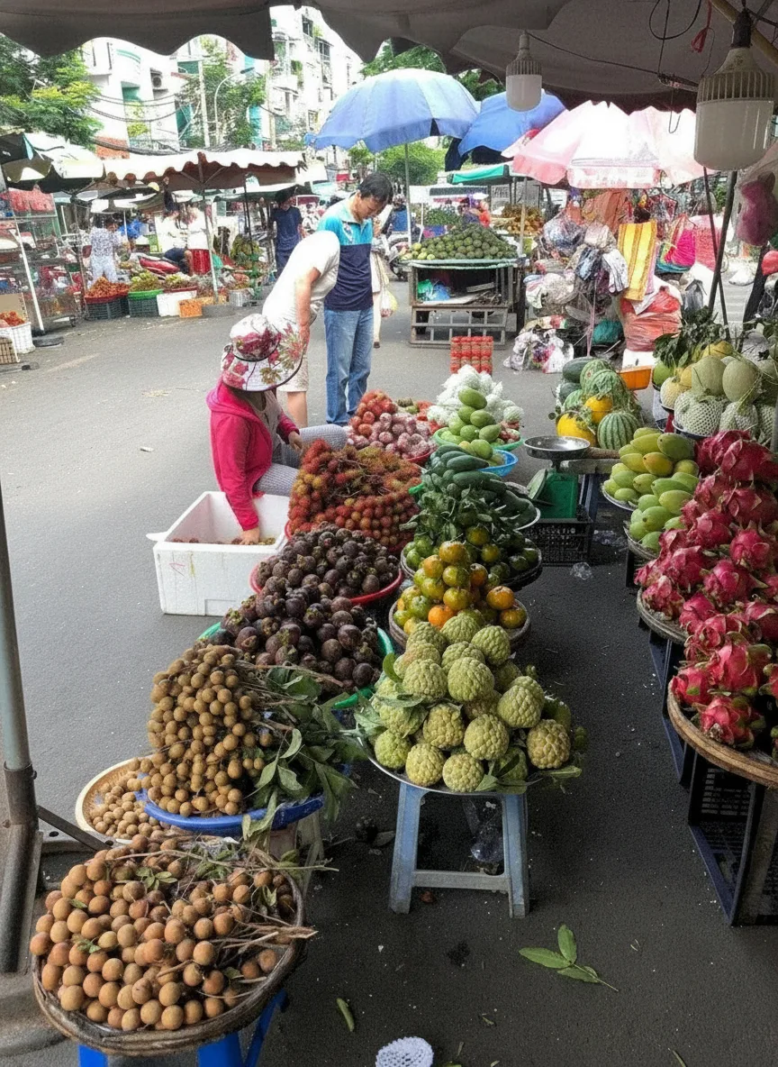 Walking through Ba Chieu Market, travelers can explore fresh produce stalls,