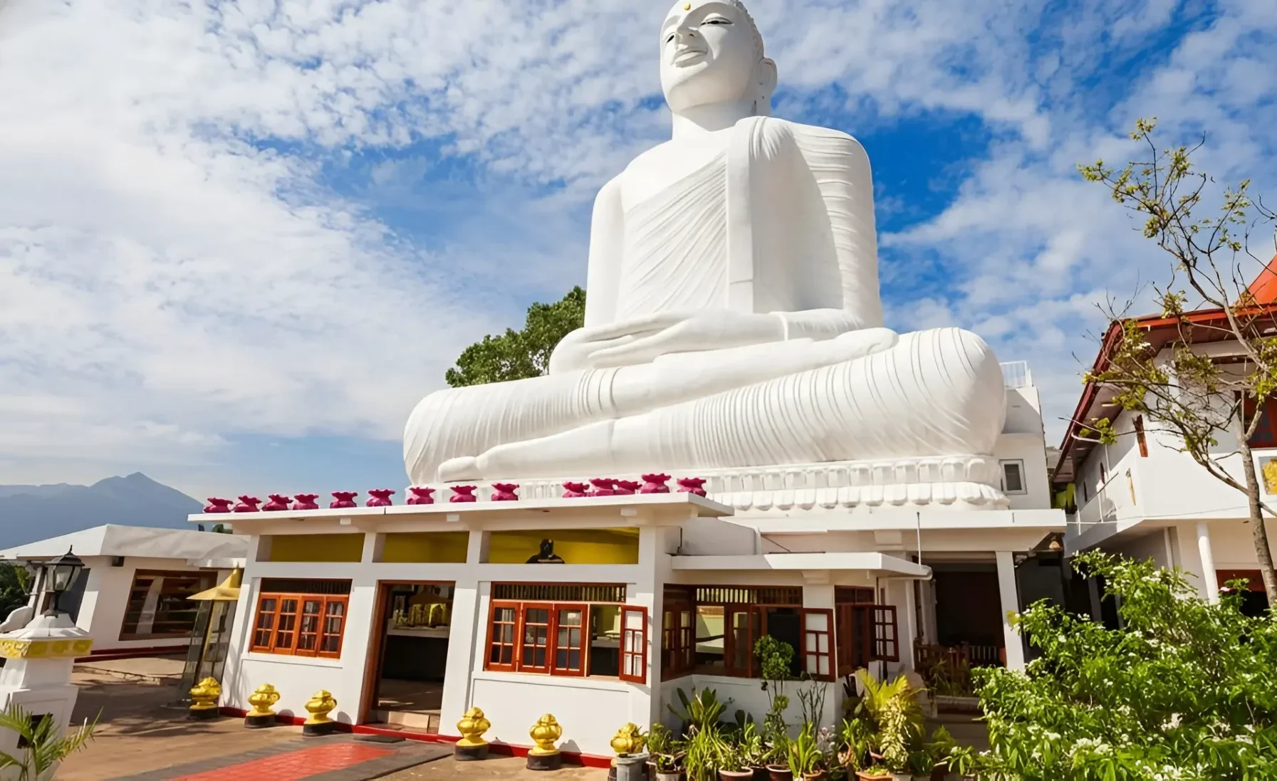 The Bahirawakanda Buddha Statue, officially known as the Sri Maha Bodhi Viharaya, is one of Kandy’s most iconic landmarks. This giant seated Buddha overlooks the city from a hilltop, offering breathtaking 360° views of the Kandy valley. It’s especially beautiful during sunrise or sunset when the golden light falls across the temple and surrounding hills.