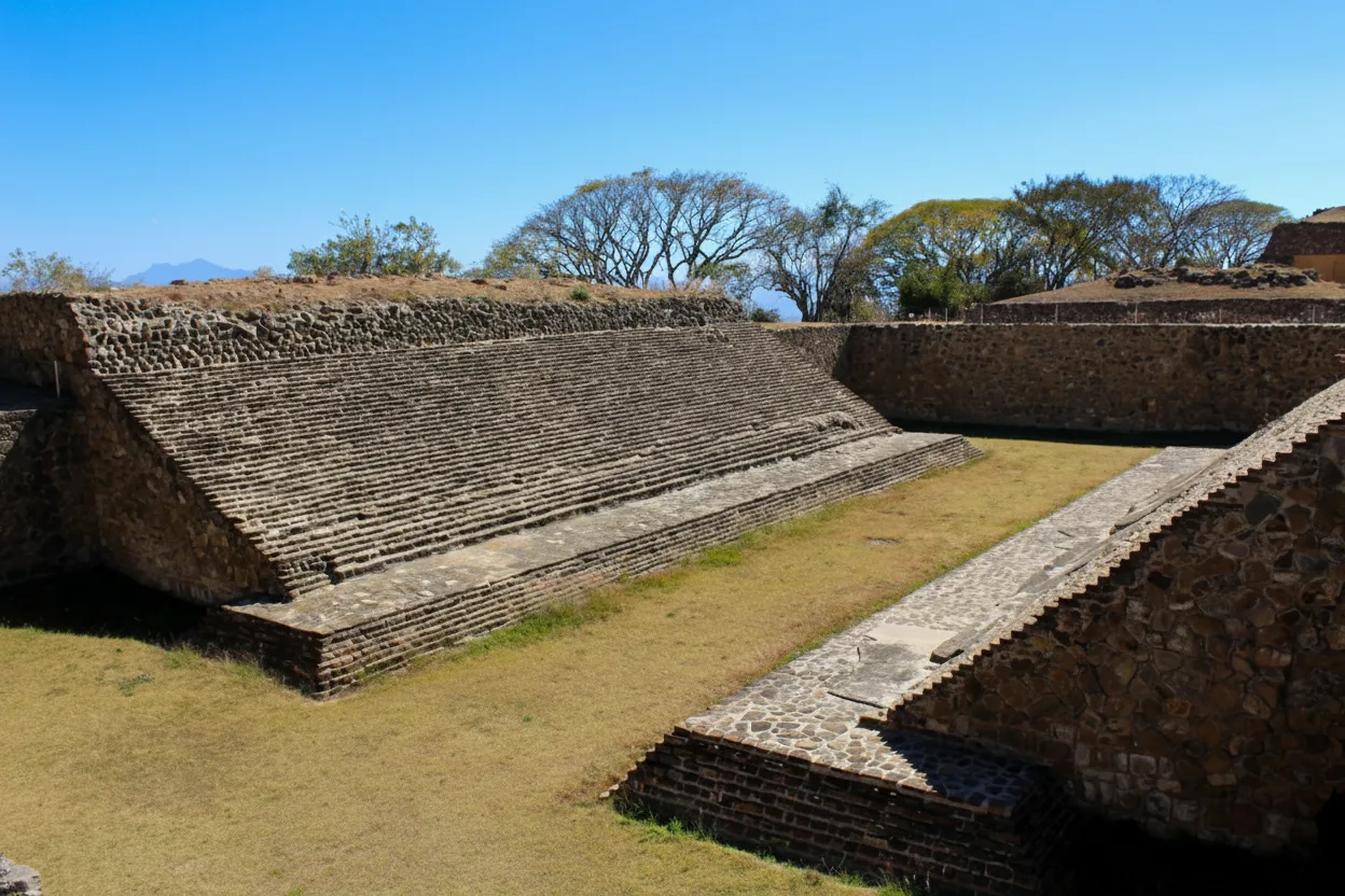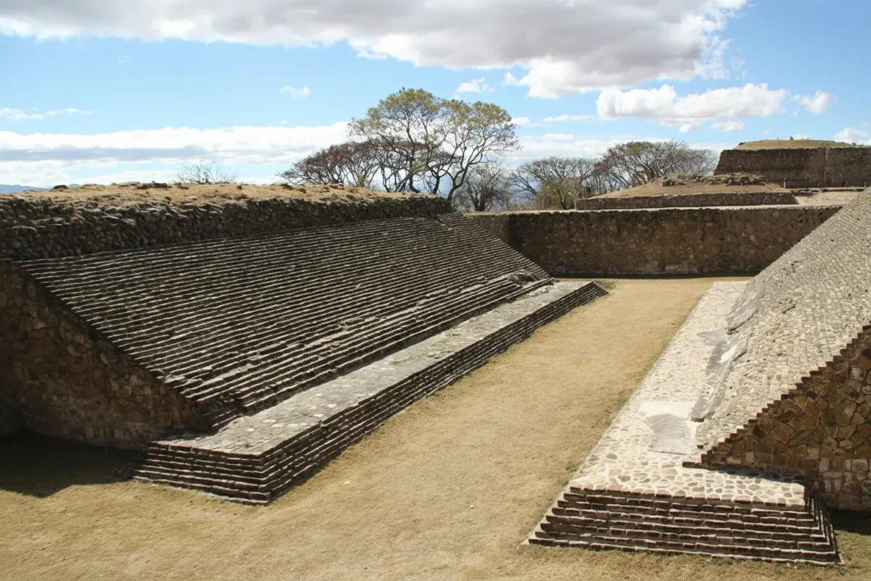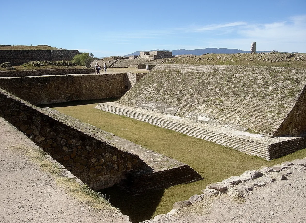 The Ball Court at Monte Albán is an important ceremonial and recreational space used for the ancient Mesoamerican ball game. This game held deep cultural and symbolic meaning for the Zapotec people, often linked to ritual practices and social events. The layout of the court reflects the architectural traditions shared across ancient Mesoamerican civilizations.