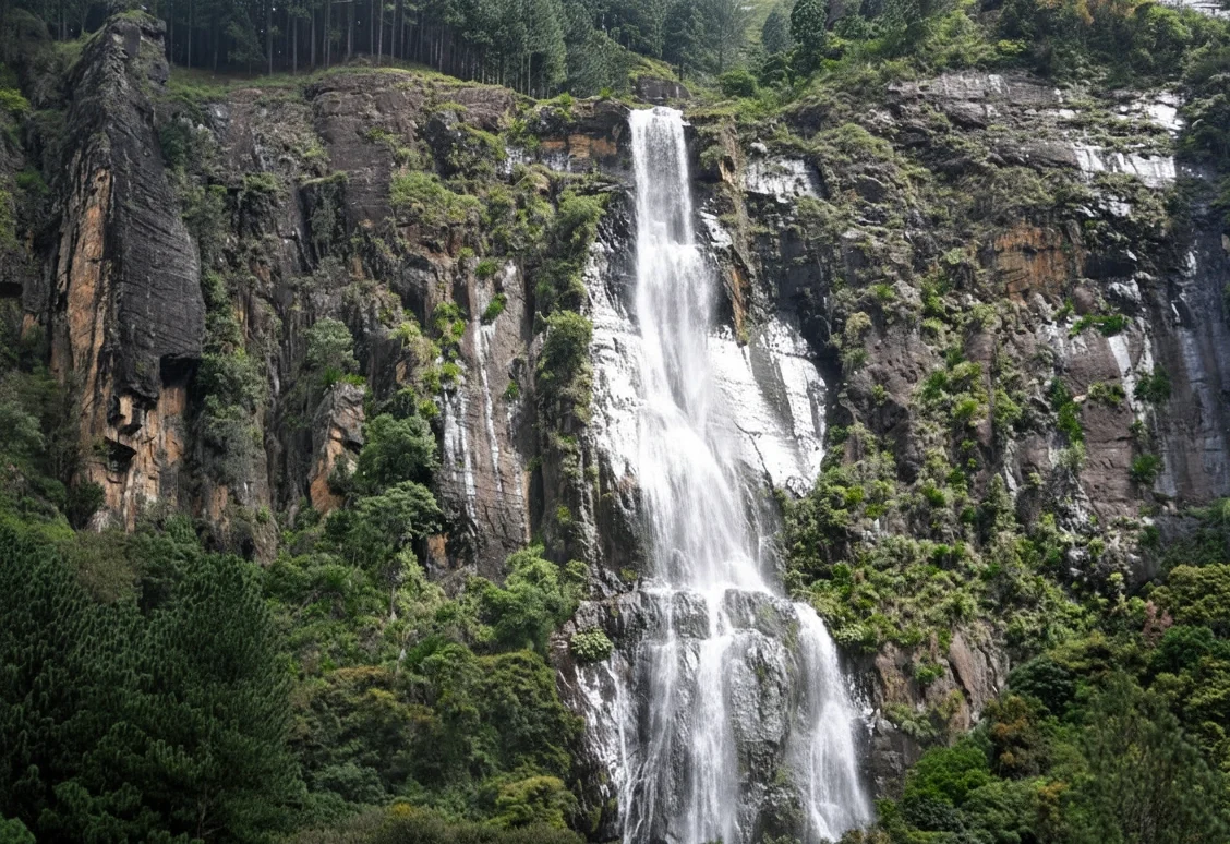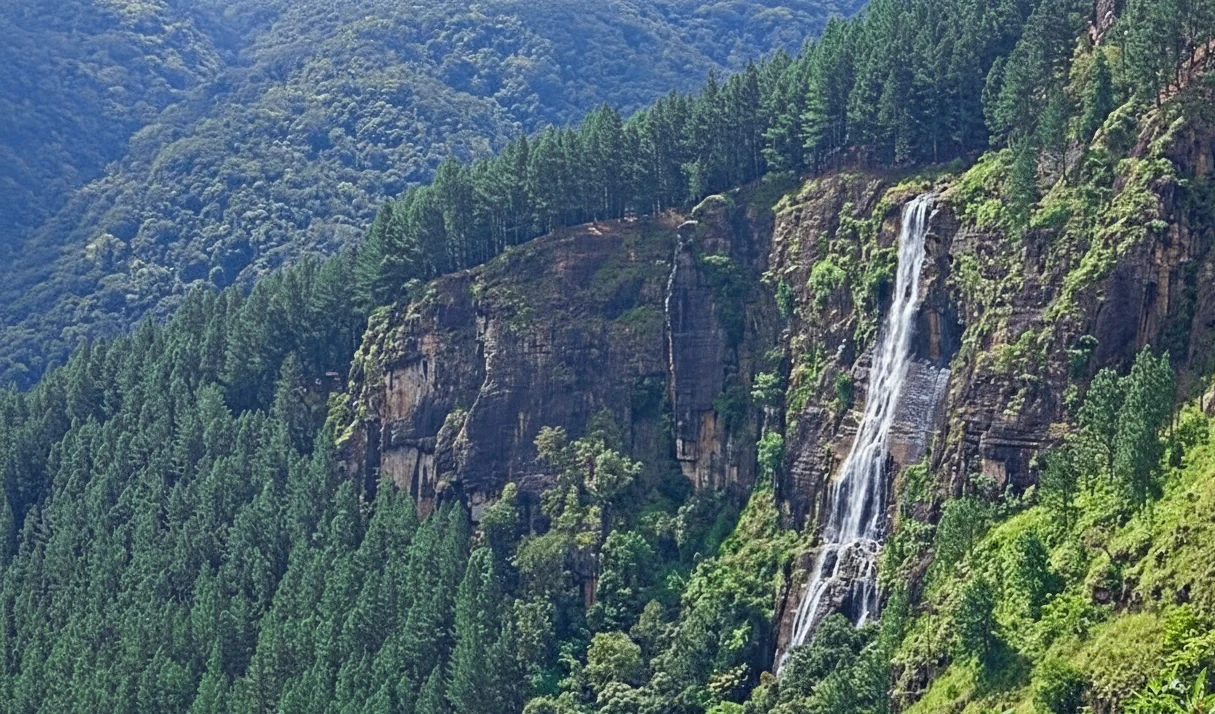 Standing at a majestic 263 meters (863 feet), Bambarakanda Falls holds the title of Sri Lanka’s tallest waterfall. Hidden among pine forests and mountain ridges near Ohiya, this spectacular cascade is a paradise for nature lovers, photographers, and anyone seeking a peaceful highland escape.