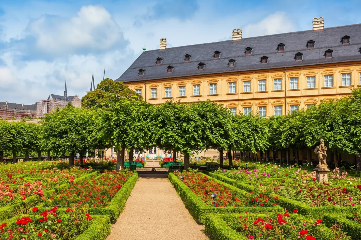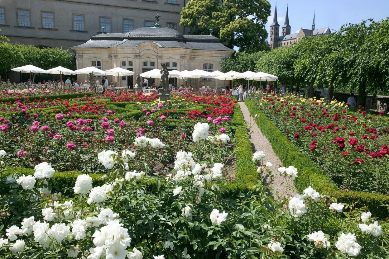 The Bamberg Rose Garden, located beside the Neue Residenz, is one of the city’s most beautiful and peaceful green spaces. Featuring over 4,000 roses, manicured paths, sculptures, and sweeping views of Bamberg, it is a favorite stop for travelers seeking calm and scenery.