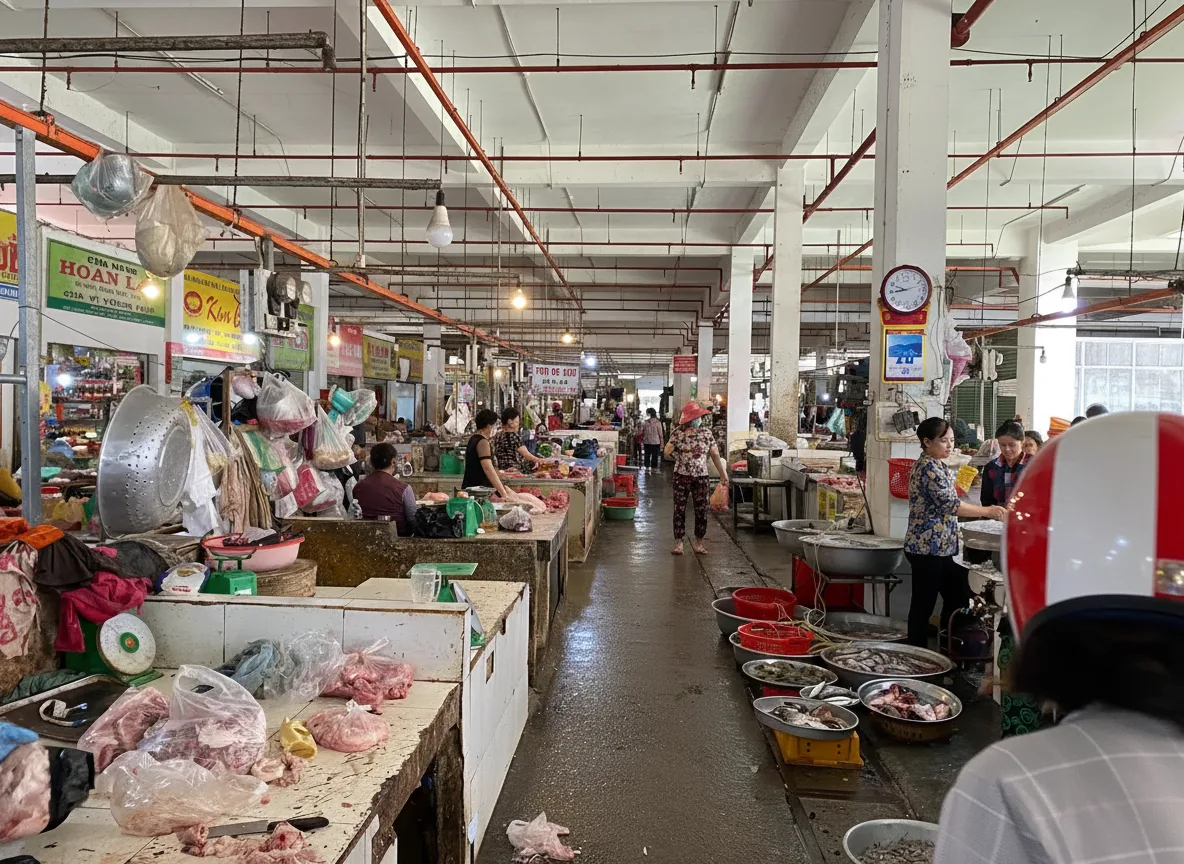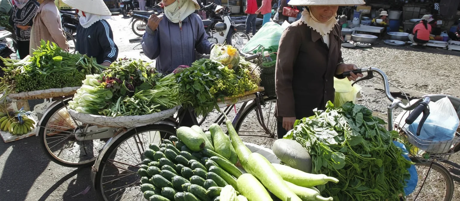 Province, Vietnam. It is a daily gathering place where residents buy fresh produce, street