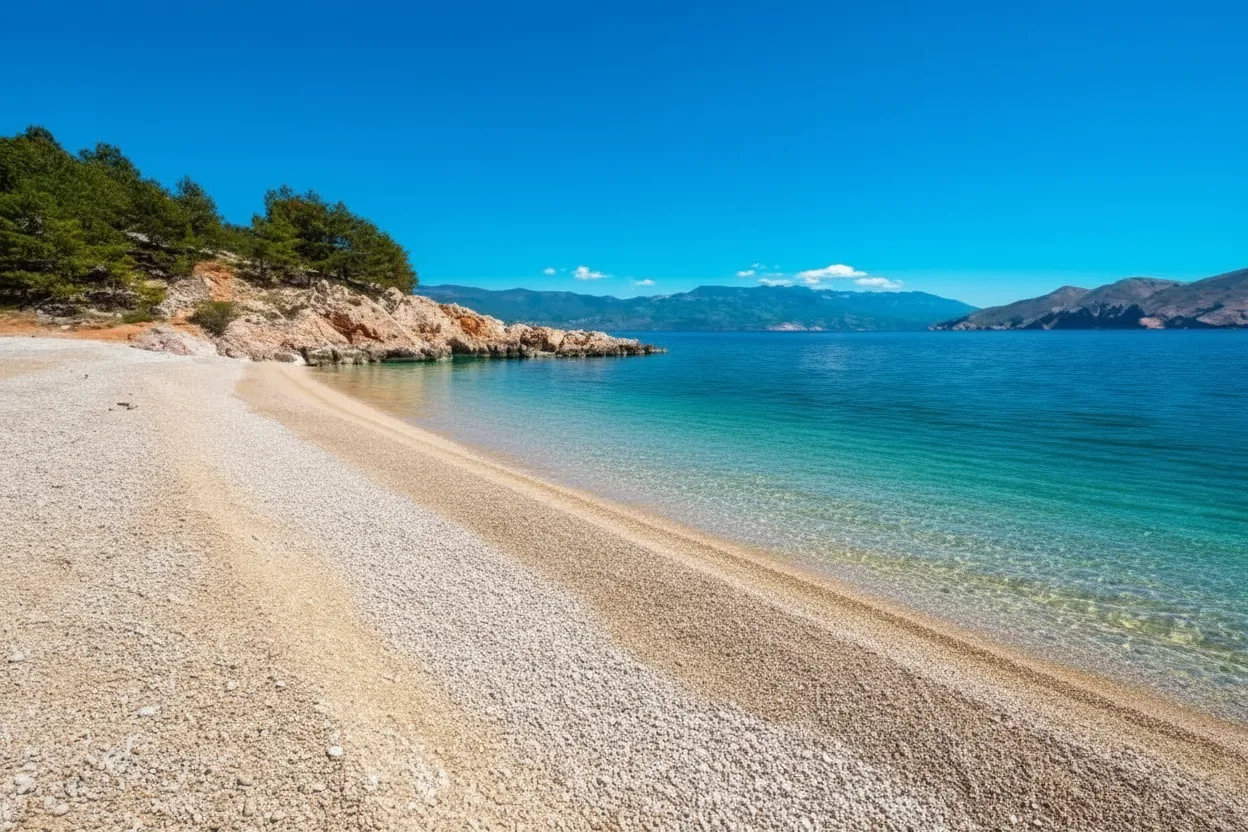 Baška, this beach stretches for nearly two kilometers and offers beautiful