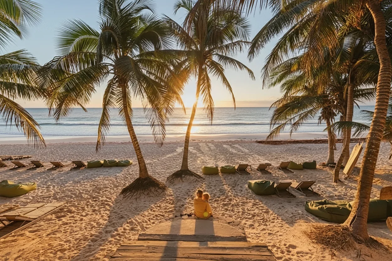 Beach Road in Tulum runs parallel to the coastline and is lined with eco-hotels, boutique accommodations, and beach clubs. It offers a relaxed Caribbean vibe and easy access to the beach. Visitors can stroll along the road, enjoy beachfront dining, or relax at one of the many eco-conscious hotels and clubs. The area combines leisure, comfort, and sustainable tourism. For travelers, Beach Road is ideal for beach access, sunset views, and casual exploration of Tulum’s coastal amenities.