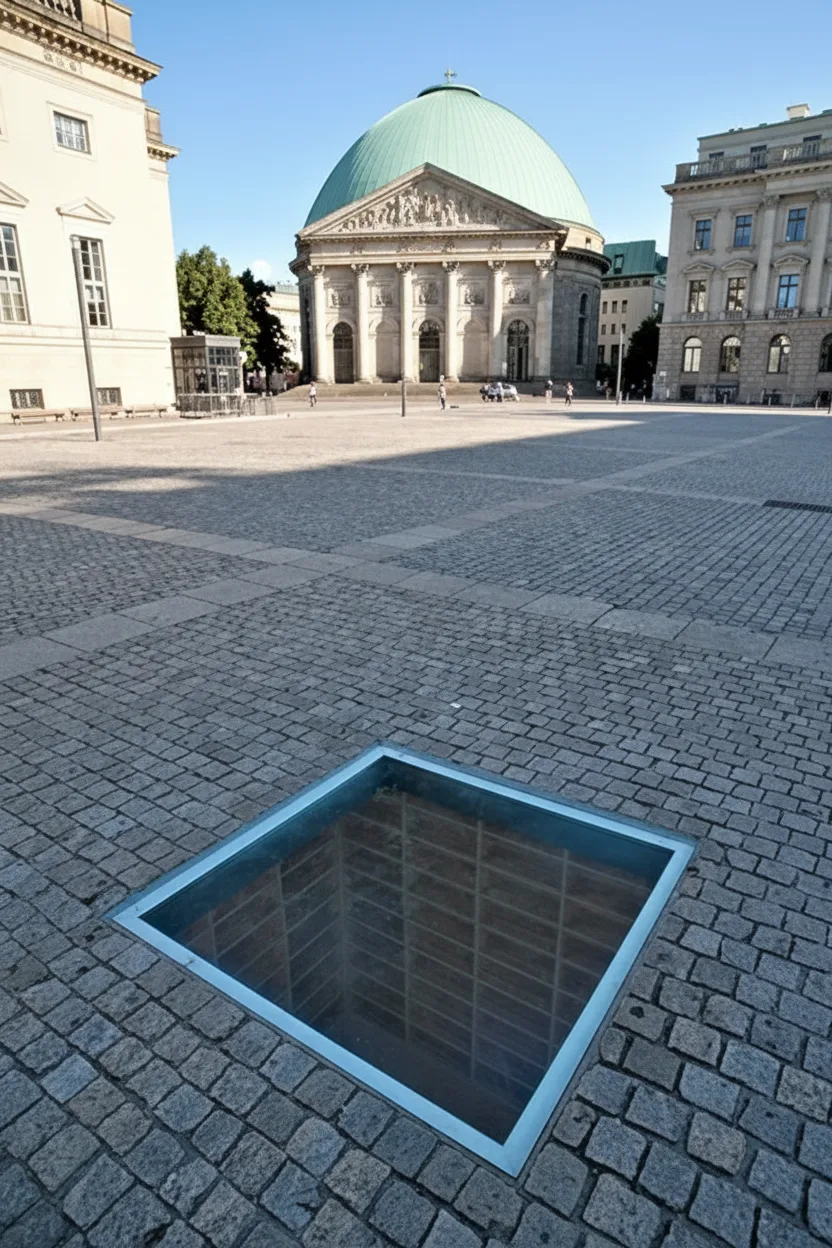• 📚 Visit the “Empty Library” (Versunkene Bibliothek)—an underground memorial with empty white shelves 🕯️ ✨