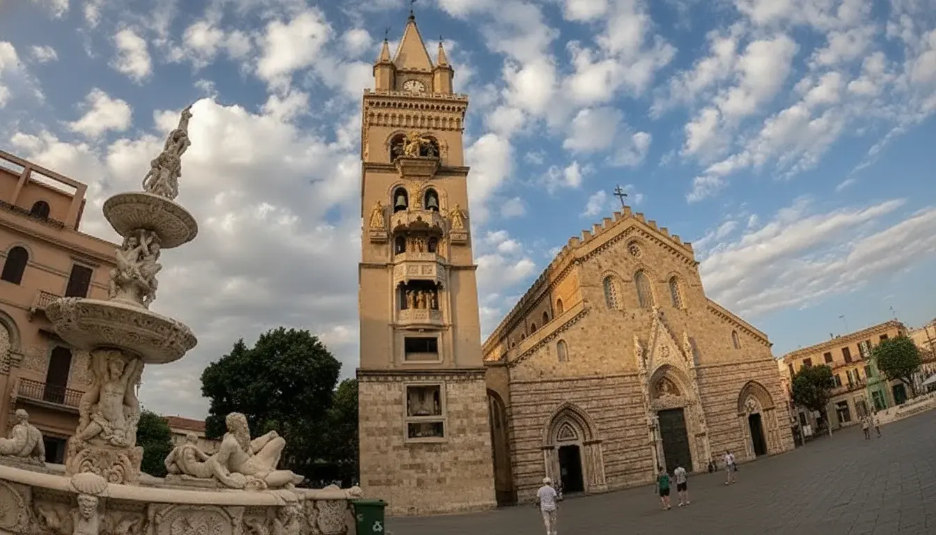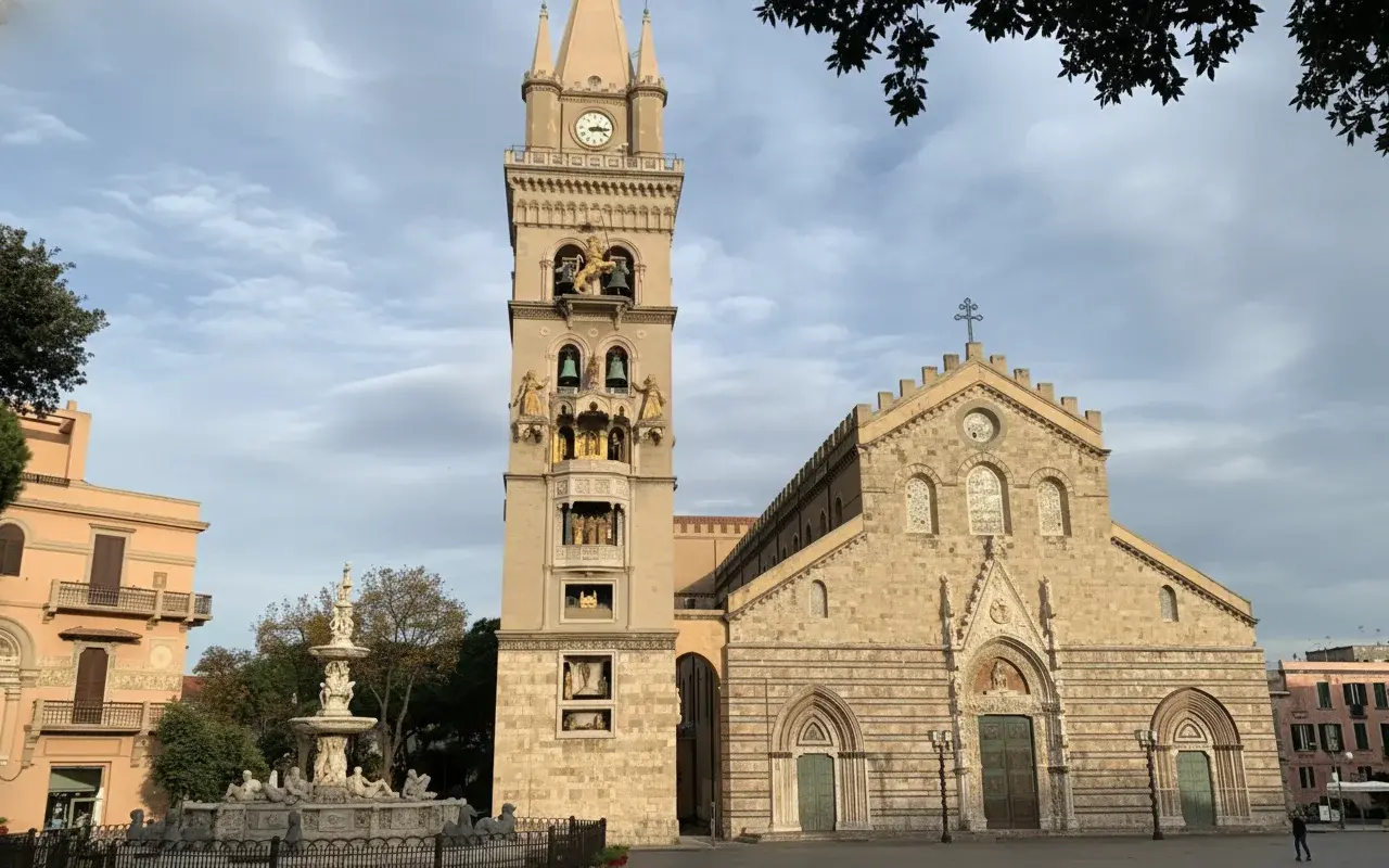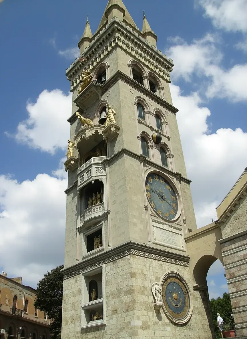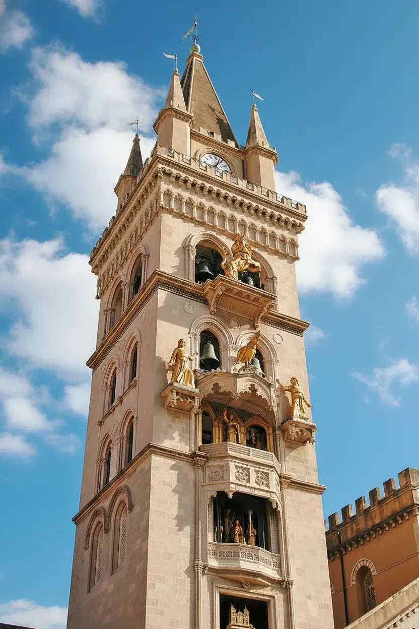 - Morning ☀️: Explore Messina Cathedral ⛪🙏 → 12:00 PM watch 🕰️ the Bell Tower clock show 🔔✨