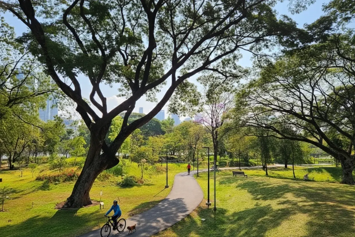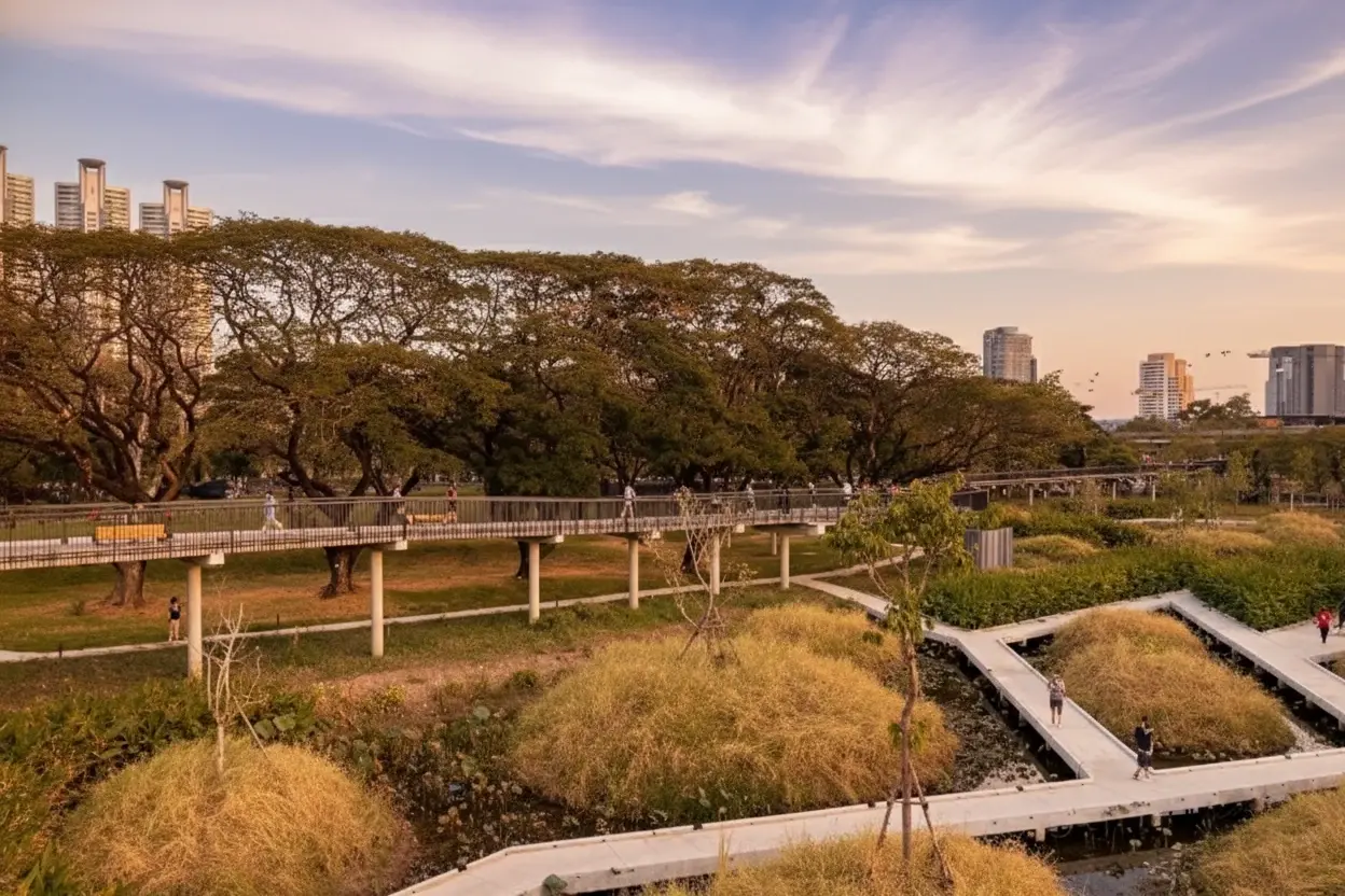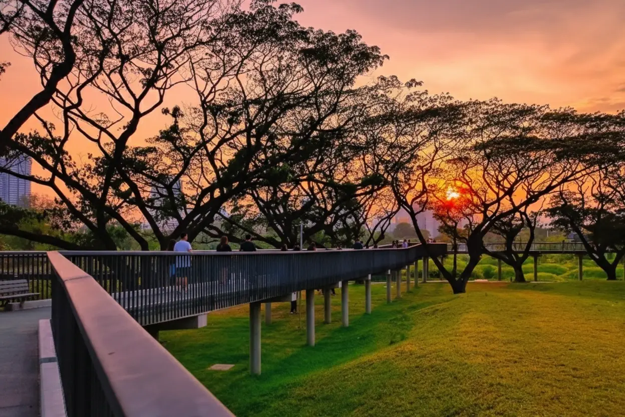 expanded into the Benjakitti Forest Park, it now includes elevated walkways, wetlands, and shaded