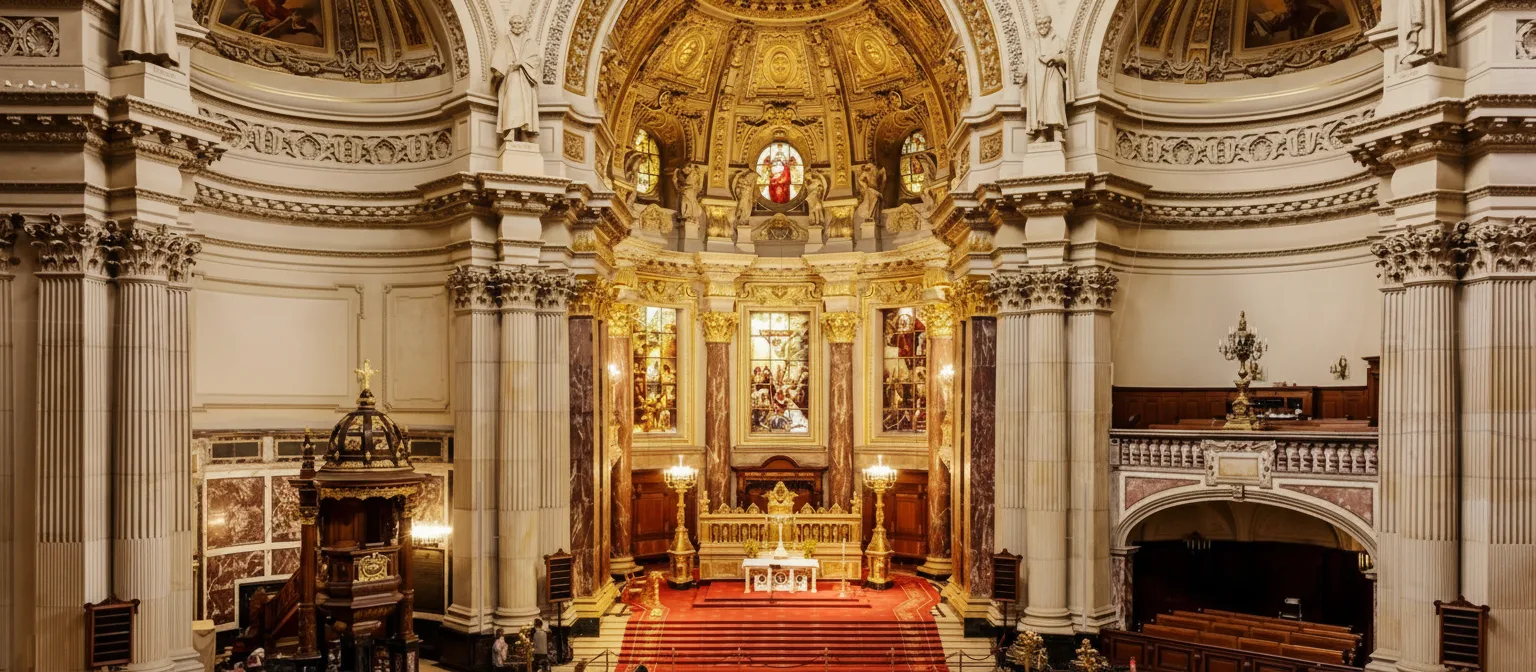 - 🕙 10:00 – Begin your visit by entering the Berlin Cathedral ⛪ to admire the grandeur of the main sermon hall 😲