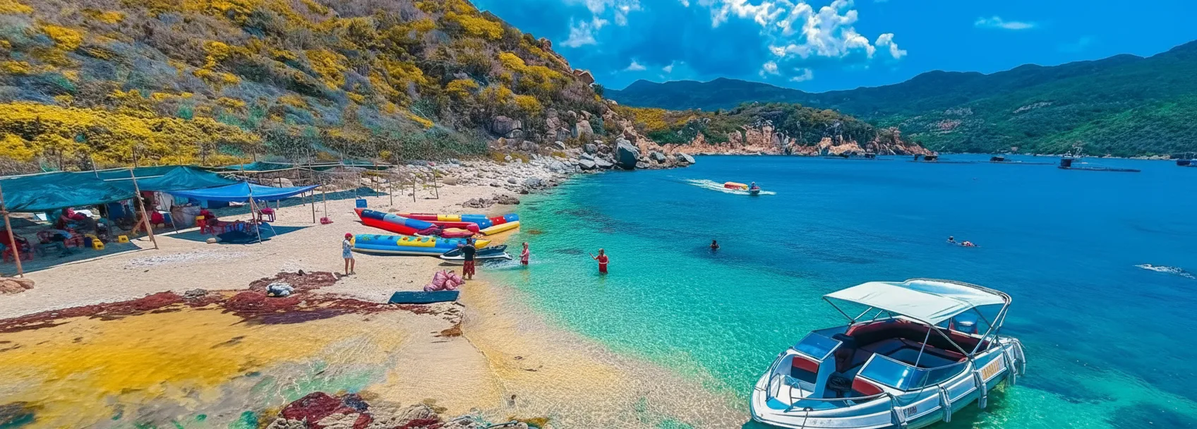 - 07:00 AM – 🚗 Depart from Cam Ranh to reach the scenic Binh Hung access area 🛣️