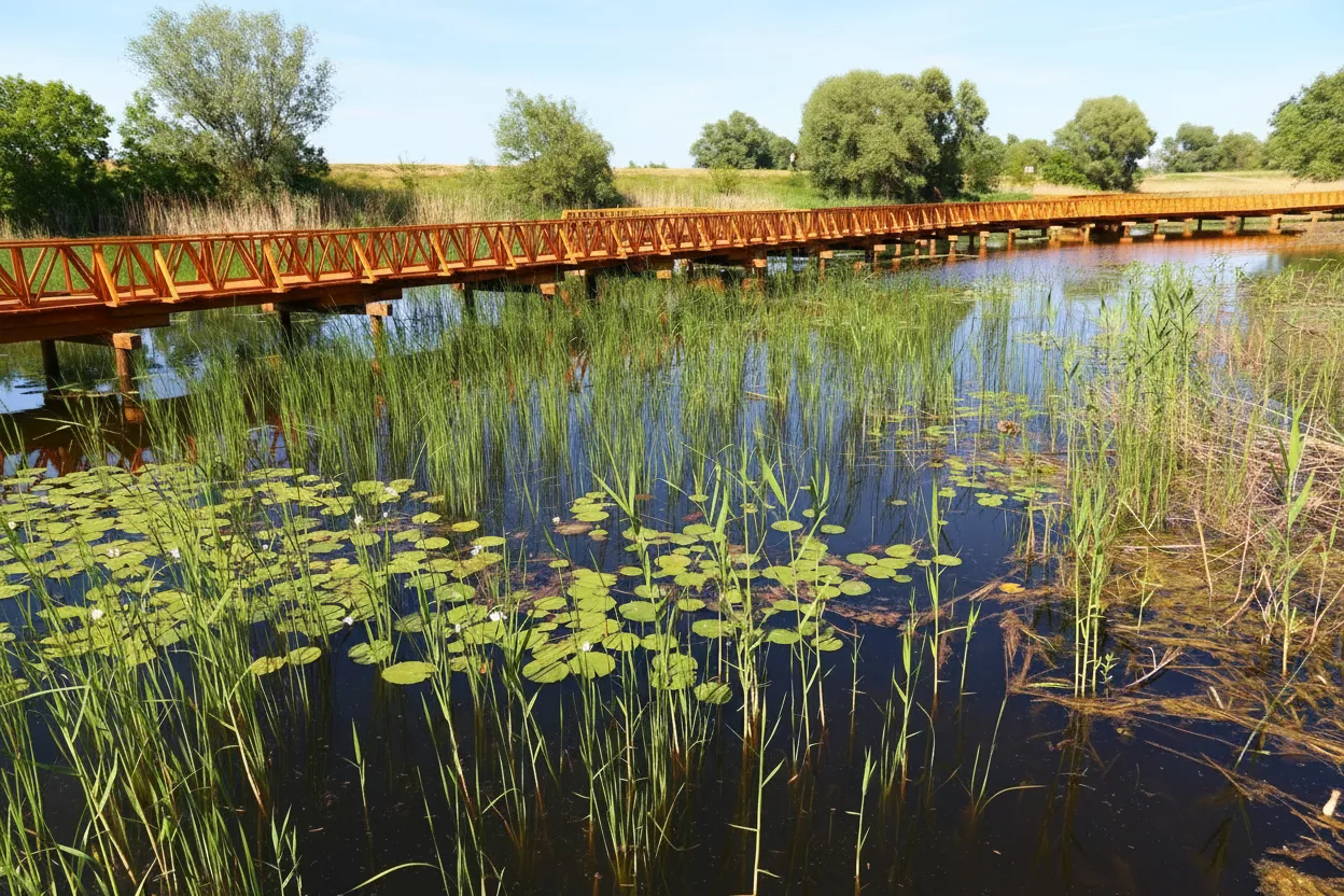 From the towers, visitors can quietly watch waterbirds, migratory species, and