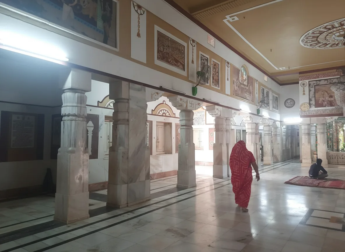 • 🎨 Admire the colorful paintings on the walls depicting key events from Krishna’s life 🖼️