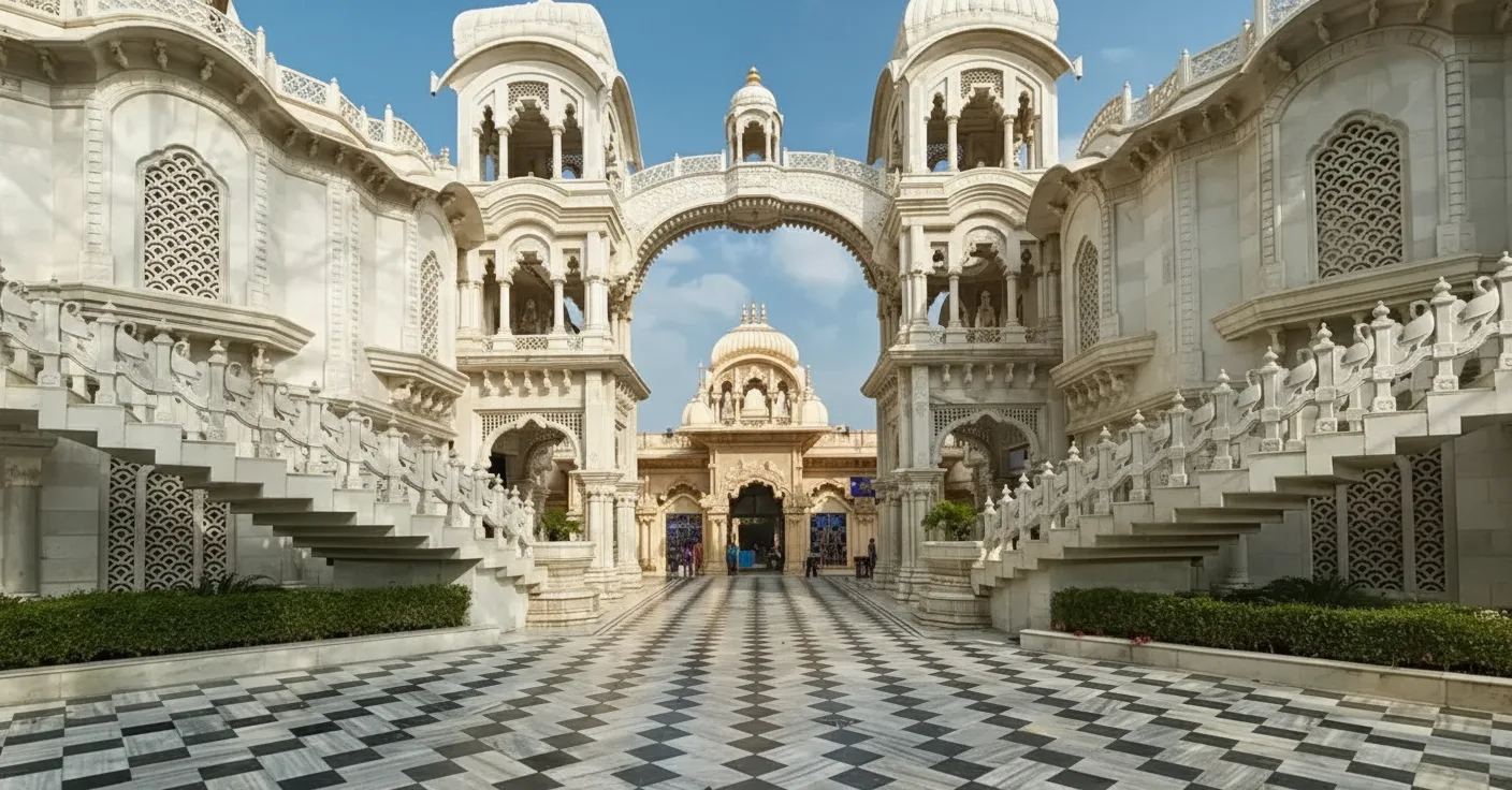 Birla Mandir in Mathura is a modern Hindu temple dedicated to Lord Krishna and Radha. Built by the Birla family, the temple combines traditional Hindu architectural elements with clean, modern design, making it a prominent spiritual and cultural landmark in the city. The temple complex is spacious and peaceful, offering visitors a calm environment for prayer and reflection. Carvings and inscriptions depict scenes from the life of Lord Krishna, adding educational value to the visit. For travelers, Birla Mandir provides a serene spiritual experience and an opportunity to explore a contemporary place of worship in Mathura.