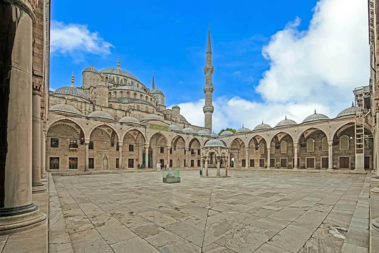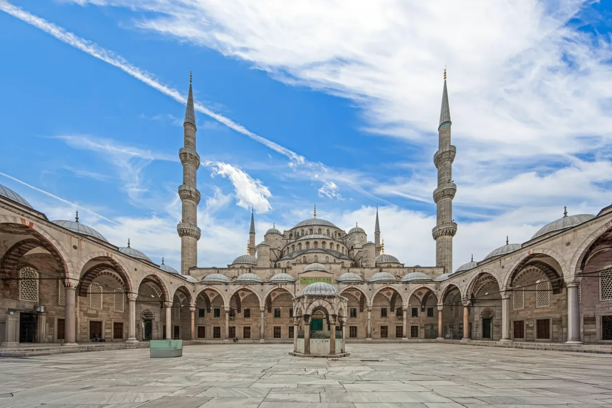 The Blue Mosque, officially known as the Sultan Ahmed Mosque, is one of Istanbul’s most famous landmarks. Built in the early 17th century, it is admired for its elegant domes, six minarets, and beautiful blue Iznik tiles. The mosque remains an active place of worship and a must-visit attraction for travelers