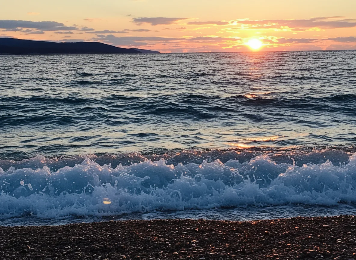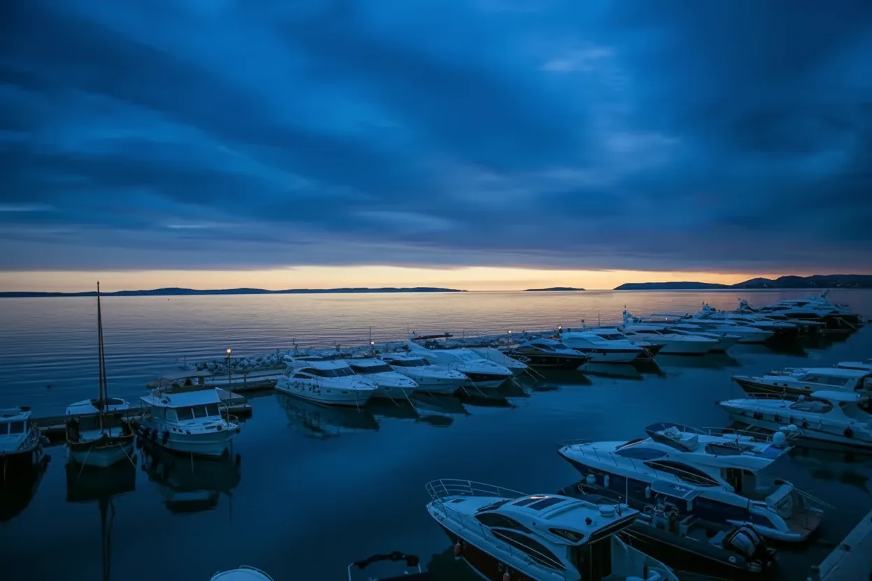 • ⛵ Watch the elegant boats 🛥️ glide across the horizon as the evening sky turns gold 🌇