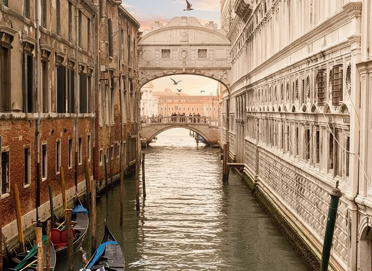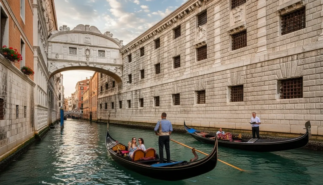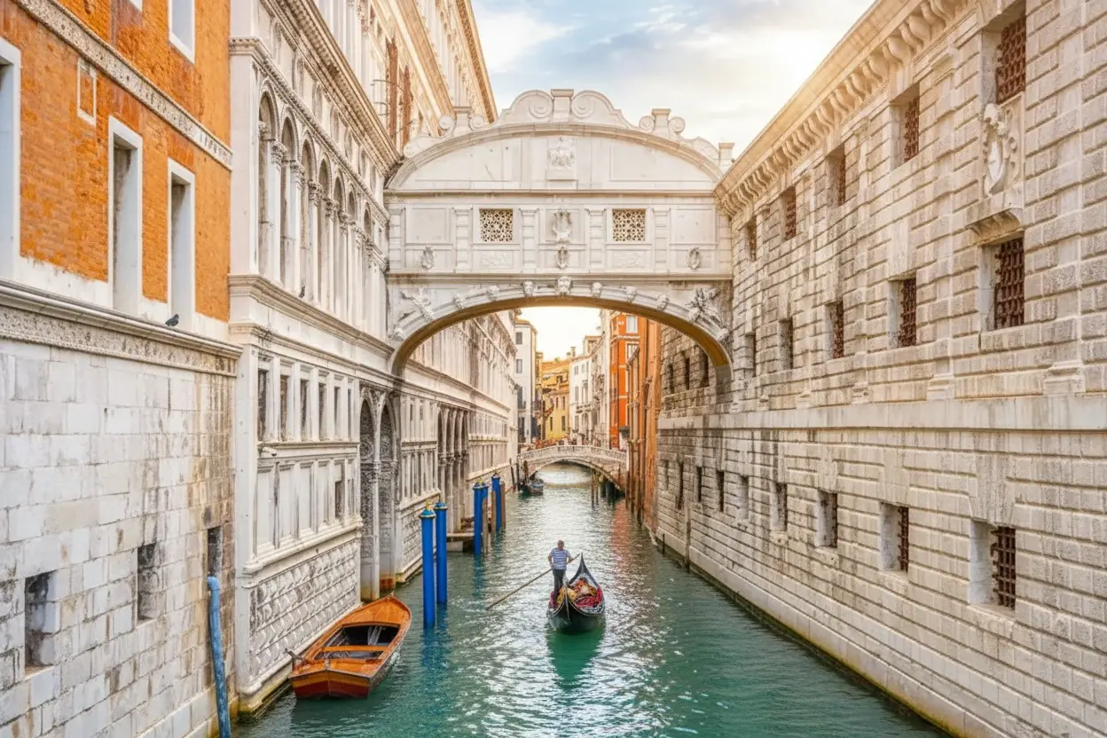 The Bridge of Sighs, or Ponte dei Sospiri, is one of Venice’s most romantic and historically fascinating landmarks. Built in 1600, the enclosed limestone bridge connects the Doge’s Palace to the old prison across the Rio di Palazzo. Its name comes from the “sighs” of prisoners who would see their last glimpse of Venice through its small stone windows before imprisonment. Today, the Bridge of Sighs stands as a symbol of both Venice’s history and its enduring charm. Its graceful Baroque design and the legend surrounding it make it one of the most photographed sites in the city.