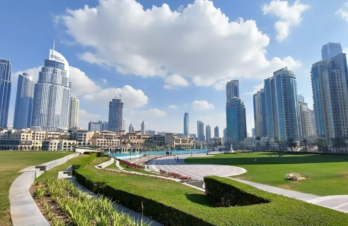 Burj Park is a tranquil green island located beside Burj Khalifa and the Dubai Fountain. It’s a favorite outdoor space for families, couples, and photographers looking for a peaceful retreat amidst Dubai’s urban skyline. The park offers walking paths, picnic spots, and stunning views of the Burj Khalifa and the surrounding lake — especially beautiful during sunset or at night.