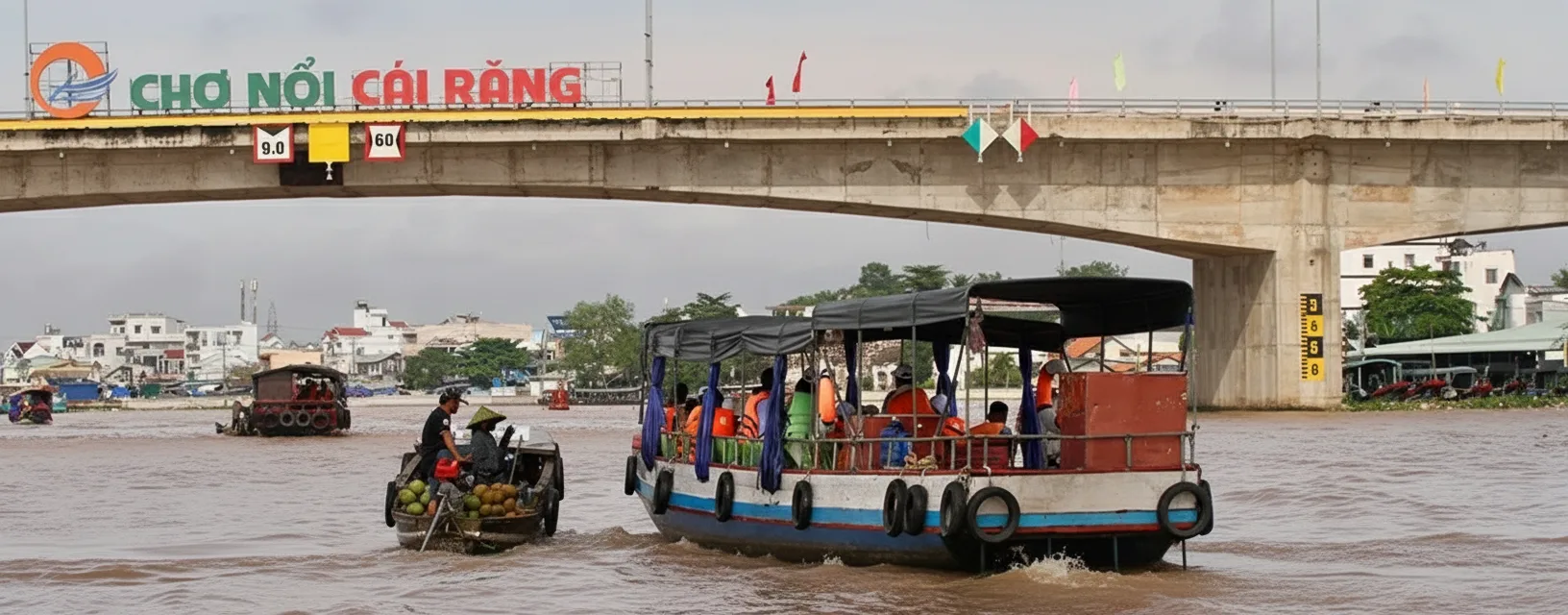 Cái Răng Bridge offers one of the widest river viewpoints in the area, stretching across the Mekong River near Can Tho. From the bridge, visitors can see boats moving along the river, riverside settlements, and the open flow of the delta waterways. For travelers, the bridge viewpoint provides a clear and elevated perspective of river life. It is a good spot for photography and for understanding the scale of the Mekong River near Cái Răng.
