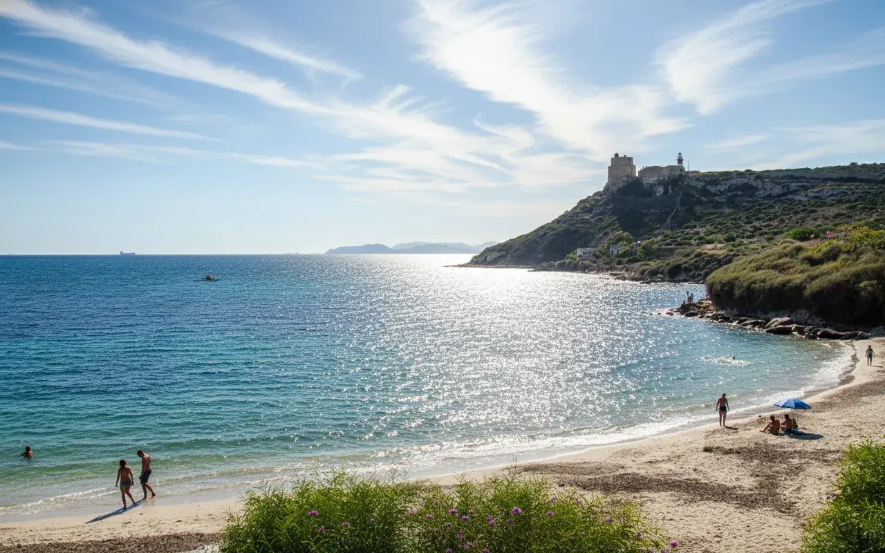 Calamosca Beach is one of Cagliari’s most peaceful and picturesque coastal spots, located just a few kilometers from the city center. Nestled between rocky cliffs and Mediterranean vegetation, this small sandy cove offers calm, clear waters and a relaxing atmosphere — making it an ideal escape from the busier Poetto Beach.
