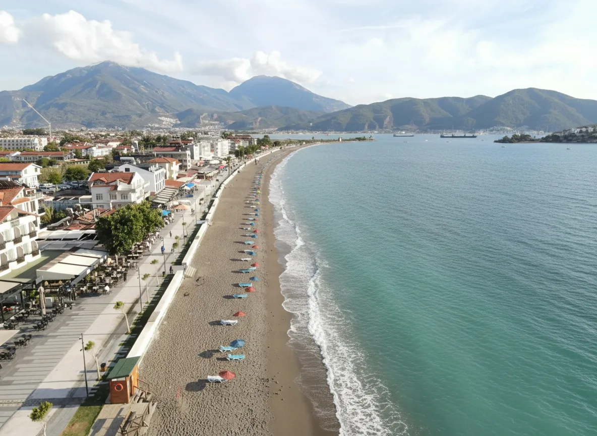 Calis Beach is a long and relaxed beach area located west of Fethiye town. It is well known for its wide shoreline, gentle sea breeze, and beautiful sunsets. The beach is ideal for walking, swimming, and enjoying a calm seaside atmosphere away from crowded tourist spots.
