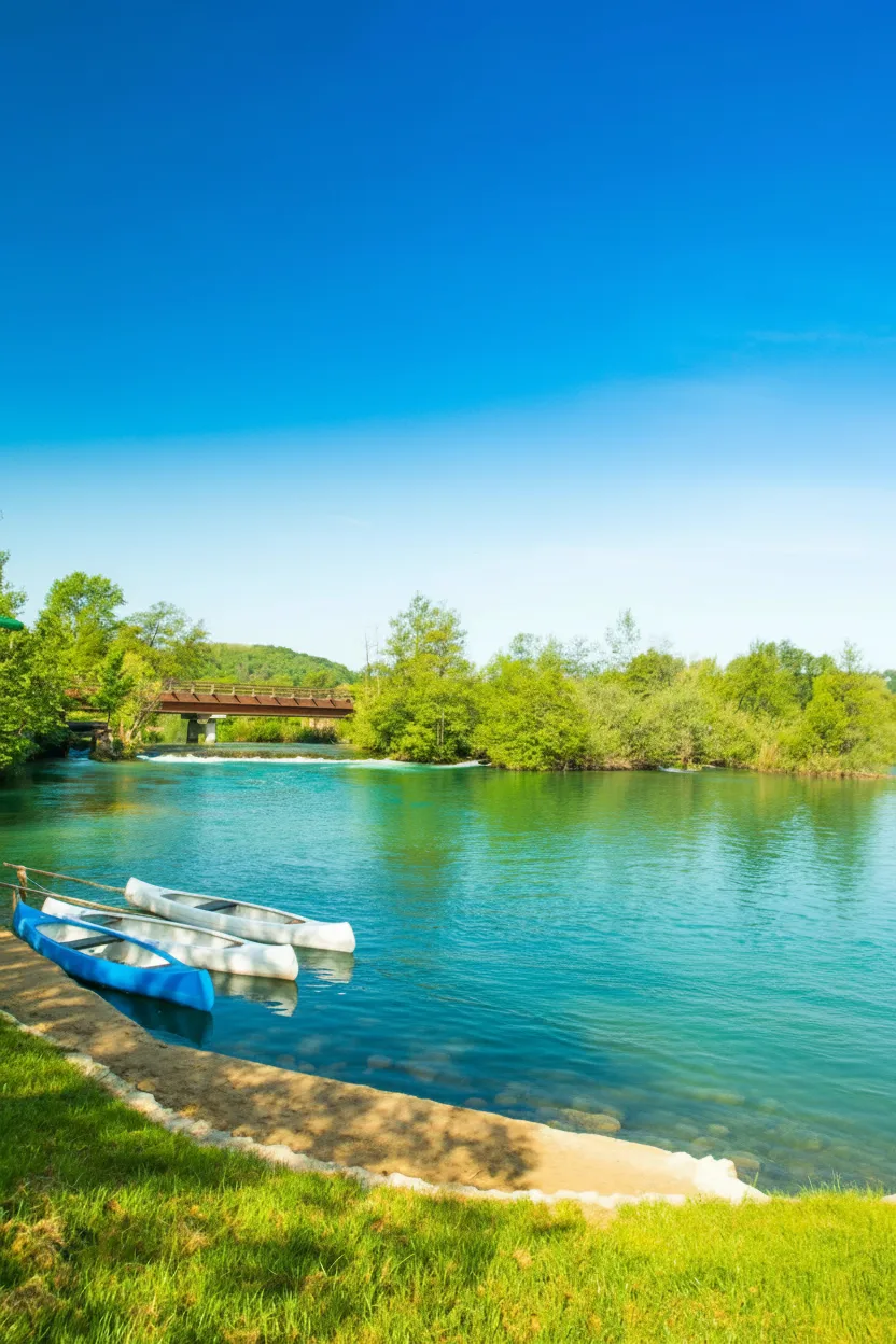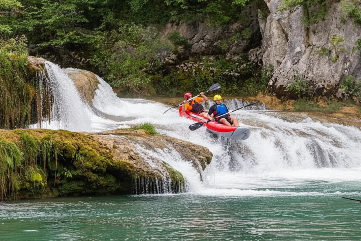 Canoeing sections along the Mrežnica River feature gentle currents and clear water, making them ideal for relaxed paddling. These routes allow visitors to move slowly through natural scenery without strong rapids. The calm sections pass through forested riverbanks, open pools, and small cascades, offering a peaceful experience suitable for beginners and families. For travelers, canoeing on the Mrežnica River provides a quiet outdoor activity that combines light adventure with close contact with nature.