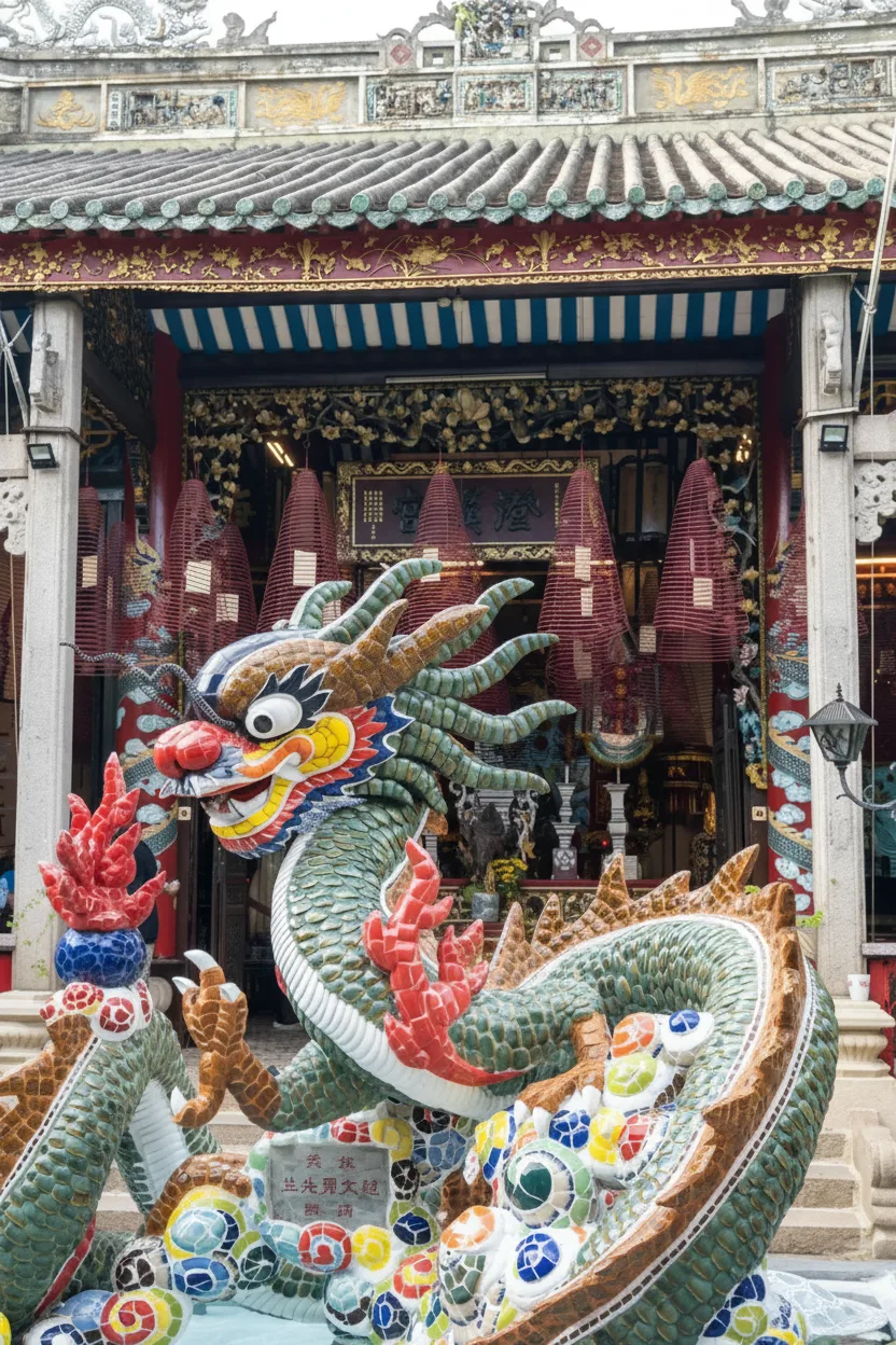• 🐉 Admire the grand dragon statues and the vibrant courtyard 🎨 artwork 🐉