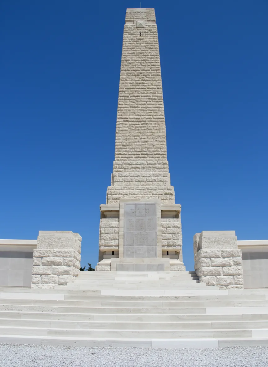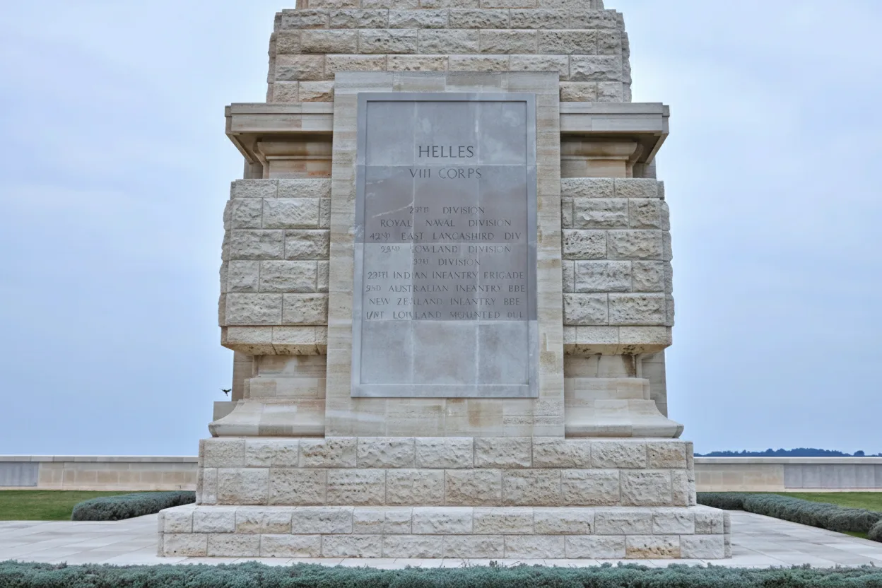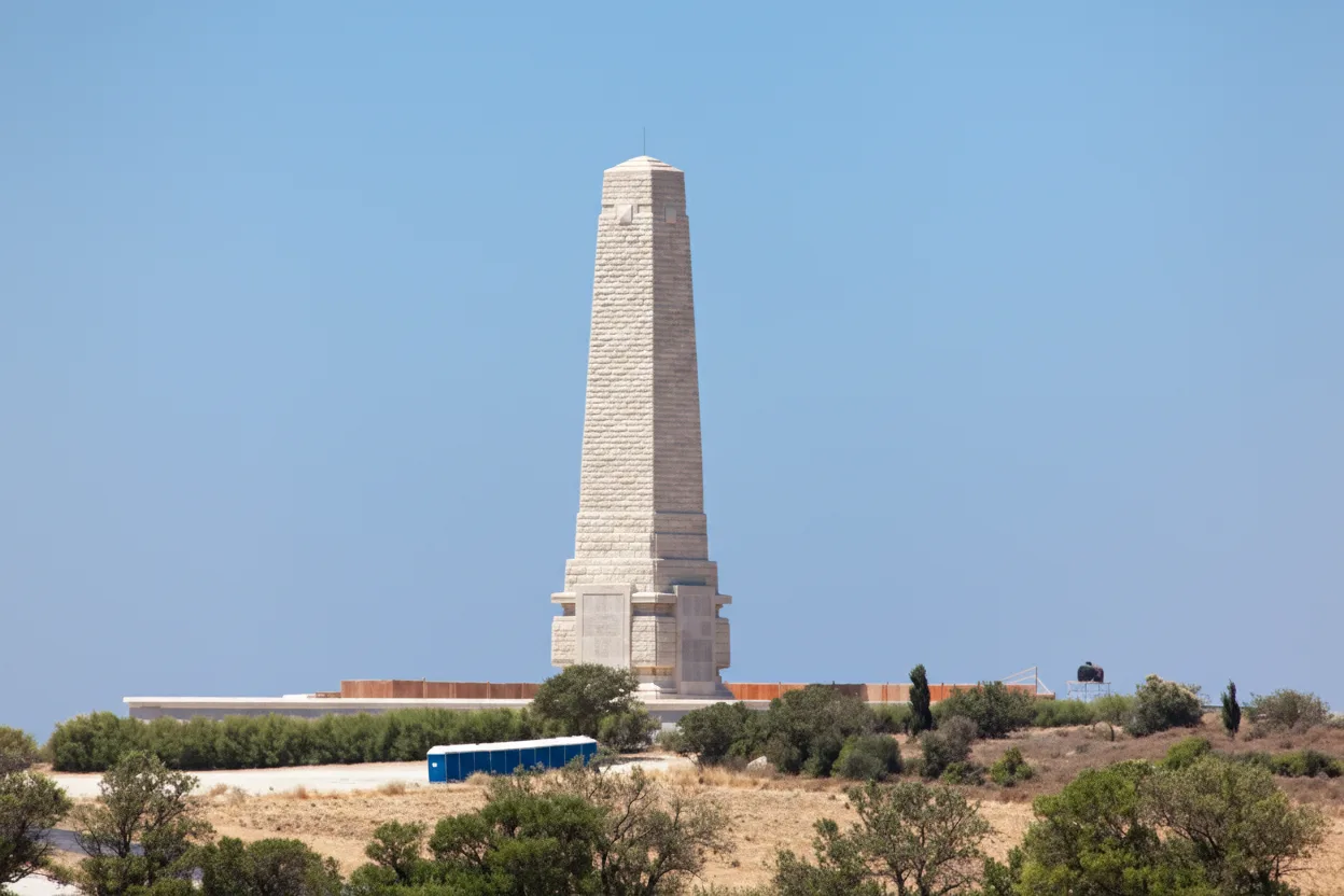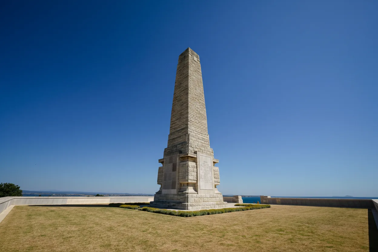 Cape Helles Memorial stands at the southern tip of the Gallipoli Peninsula and commemorates British and Commonwealth soldiers who lost their lives during the Gallipoli Campaign. The tall stone obelisk overlooks the sea and serves as a powerful place of remembrance with wide views across the surrounding coastline.
