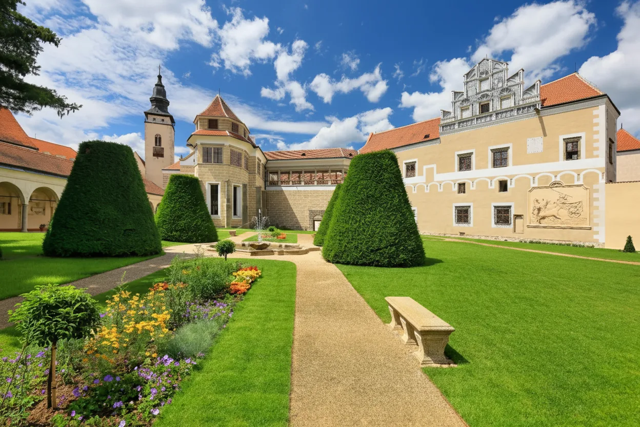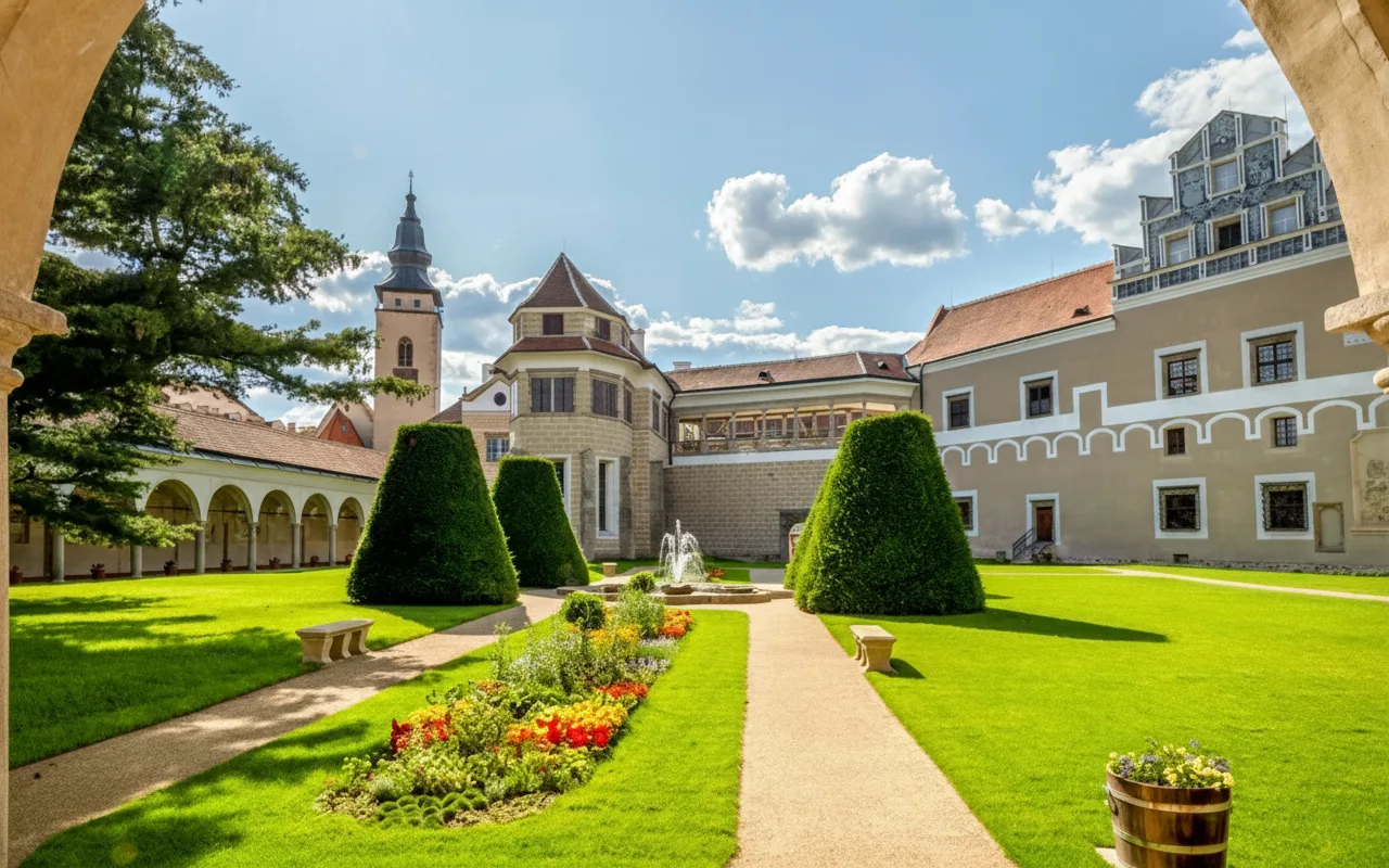 Castle Park is a peaceful landscaped green area located next to Telč Castle and forms an important part of the historic town’s setting. The park was designed as a formal garden and later adapted into a natural-style landscape with open lawns, trees, and walking paths. Visitors can enjoy quiet walks, shaded paths, and views of the castle from different angles. Castle Park is ideal for relaxing between sightseeing stops and enjoying the calm atmosphere of Telč.